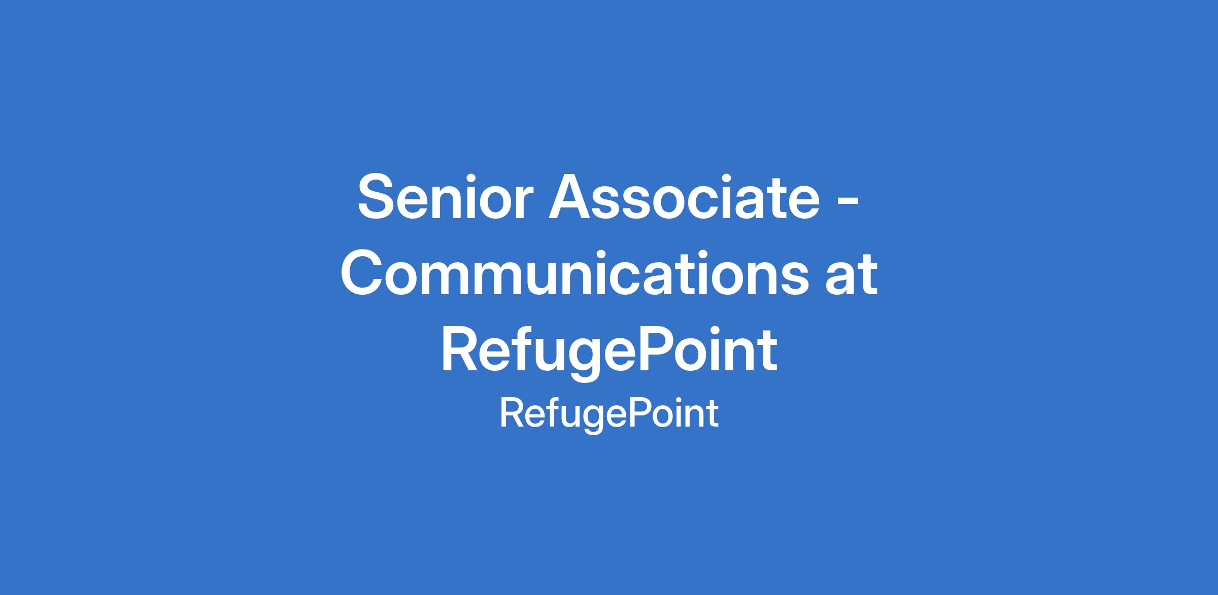 Senior Associate - Communications at RefugePoint