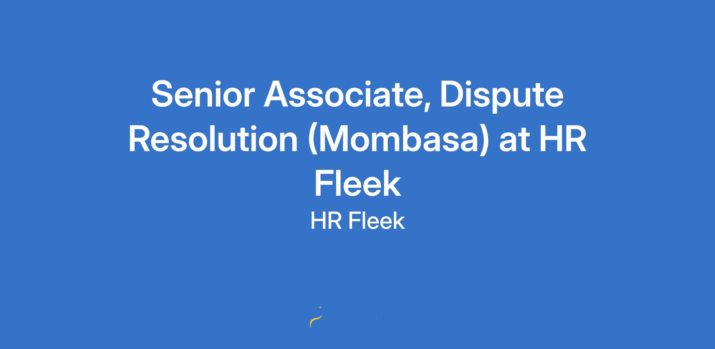 Senior Associate, Dispute Resolution (Mombasa) at HR Fleek