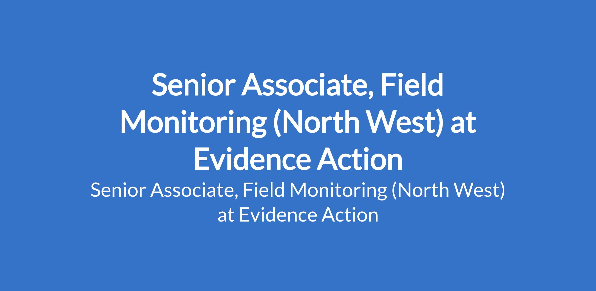 Evidence Action is recruiting to fill the position of: Senior Associate, Field Monitoring (North West). Interested candidates should possess a Bachelor's Degree in a relevant field such as Public Health, Biology, Microbiology, Nutrition, Monitoring and Evaluation, Health Economics, Statistics, or Mathematics with 6+ years of program M&E experience in Nigeria, specifically related to public health programs.