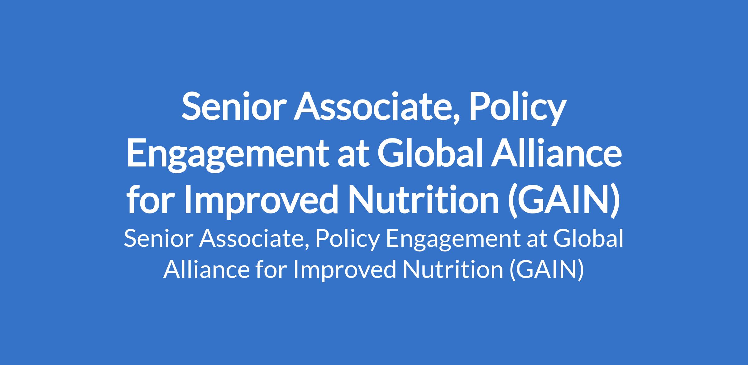 Senior Associate, Policy Engagement at Global Alliance for Improved Nutrition (GAIN)