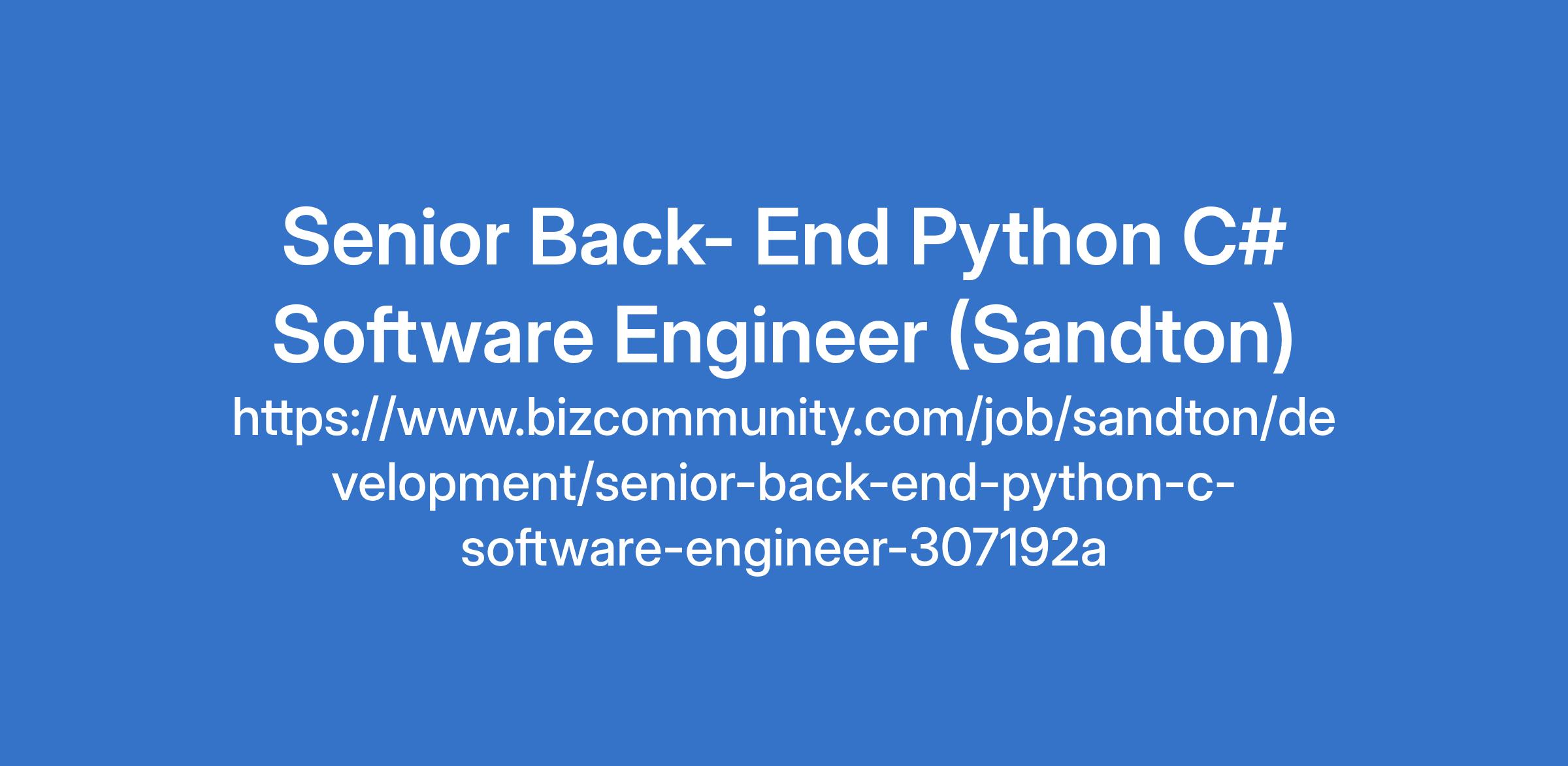 Senior Back- End Python C# Software Engineer (Sandton)