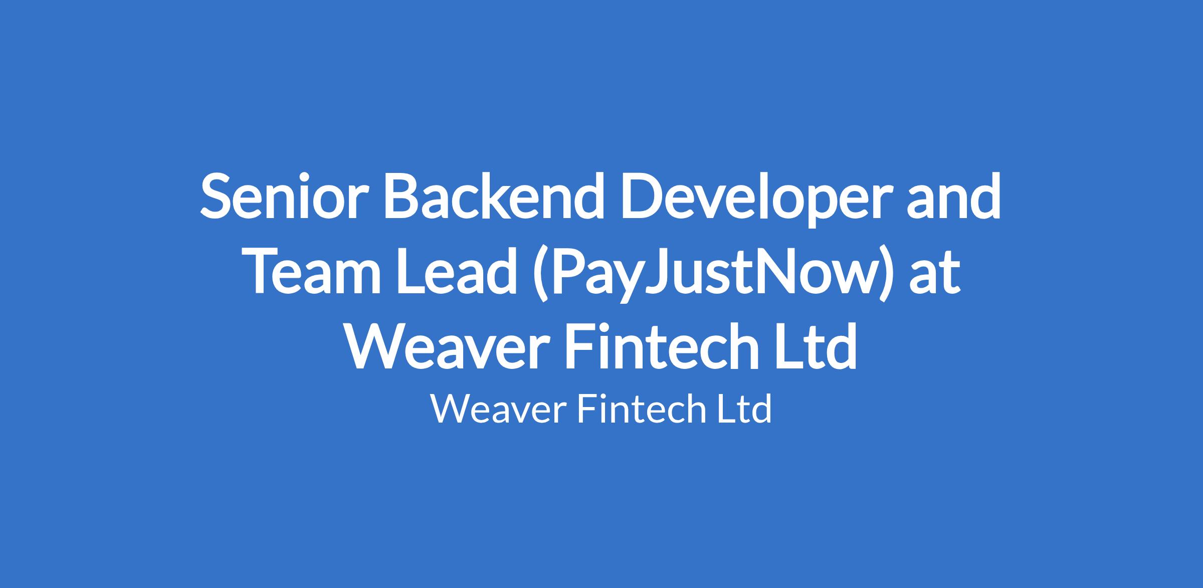 Senior Backend Developer and Team Lead (PayJustNow) at Weaver Fintech Ltd
