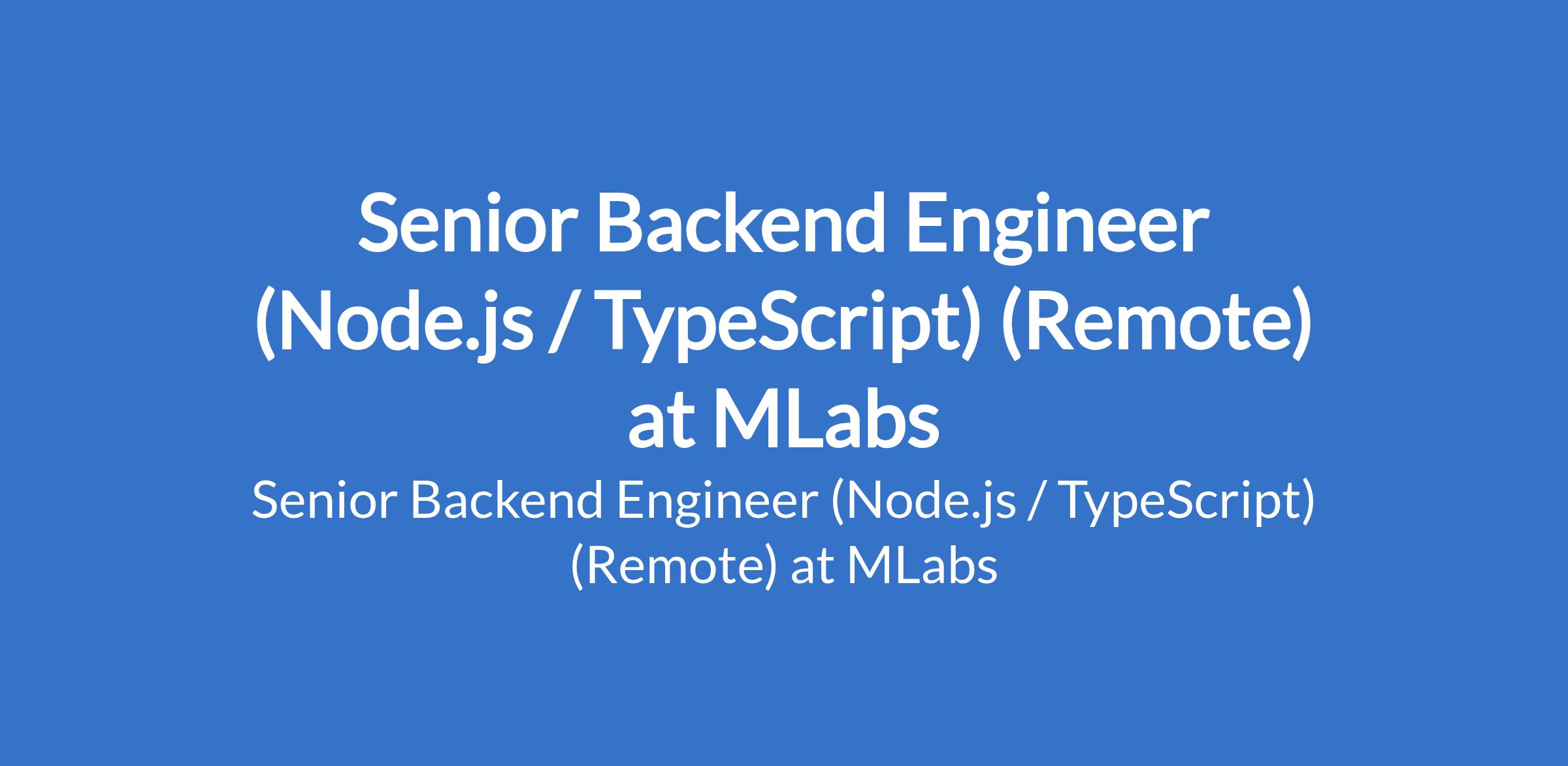 MLabs is recruiting to fill the position of: Senior Backend Engineer (Node.js / TypeScript). This is a Remote Job. Interested candidates should possess relevant qualifications with strong professional experience with TypeScript and Node.js and must be based in the EMEA region.