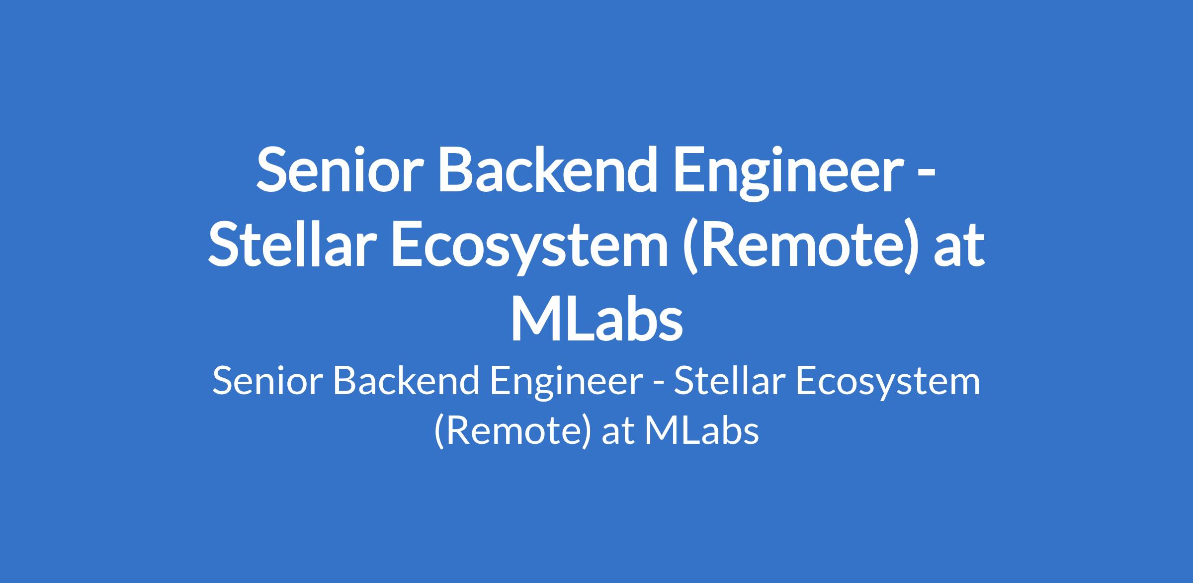 MLabs is recruiting to fill the position of: Senior Backend Engineer - Stellar Ecosystem. This is a Remote Job. Interested candidates should possess relevant qualifications with strong professional experience with TypeScript and Node.js and must be based in the EMEA region.