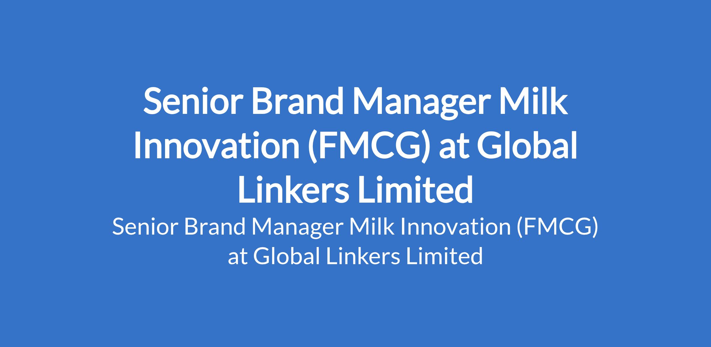 Global Linkers Limited is recruiting to fill the position of: Senior Brand Manager Milk Innovation (FMCG). The position is located in Ikeja, Lagos State. Interested candidates should possess a relevant qualification with 58 years experience in FMCG, with a strong focus on dairy or beverage categories.