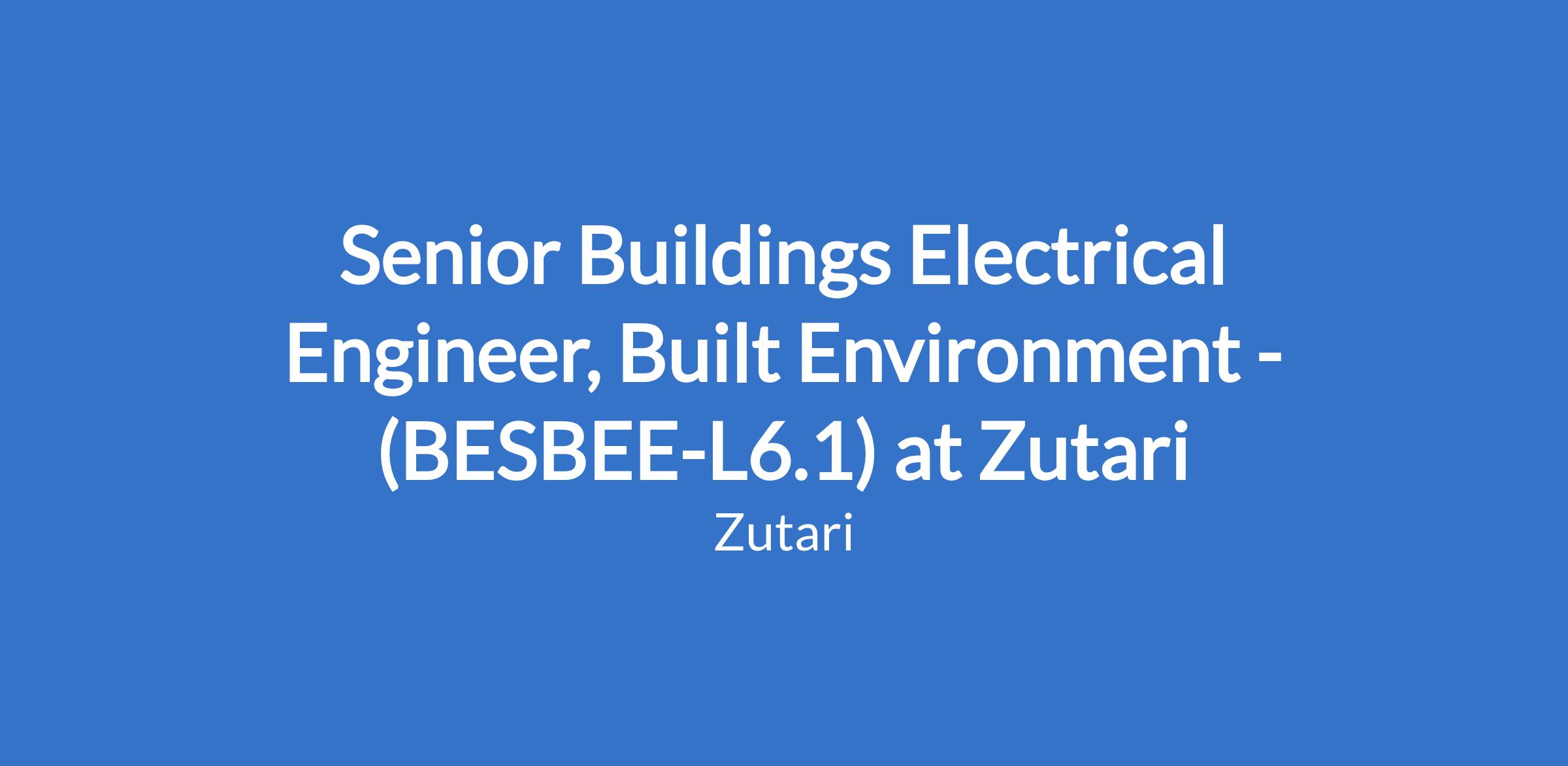 Senior Buildings Electrical Engineer, Built Environment - (BESBEE-L6.1) at Zutari