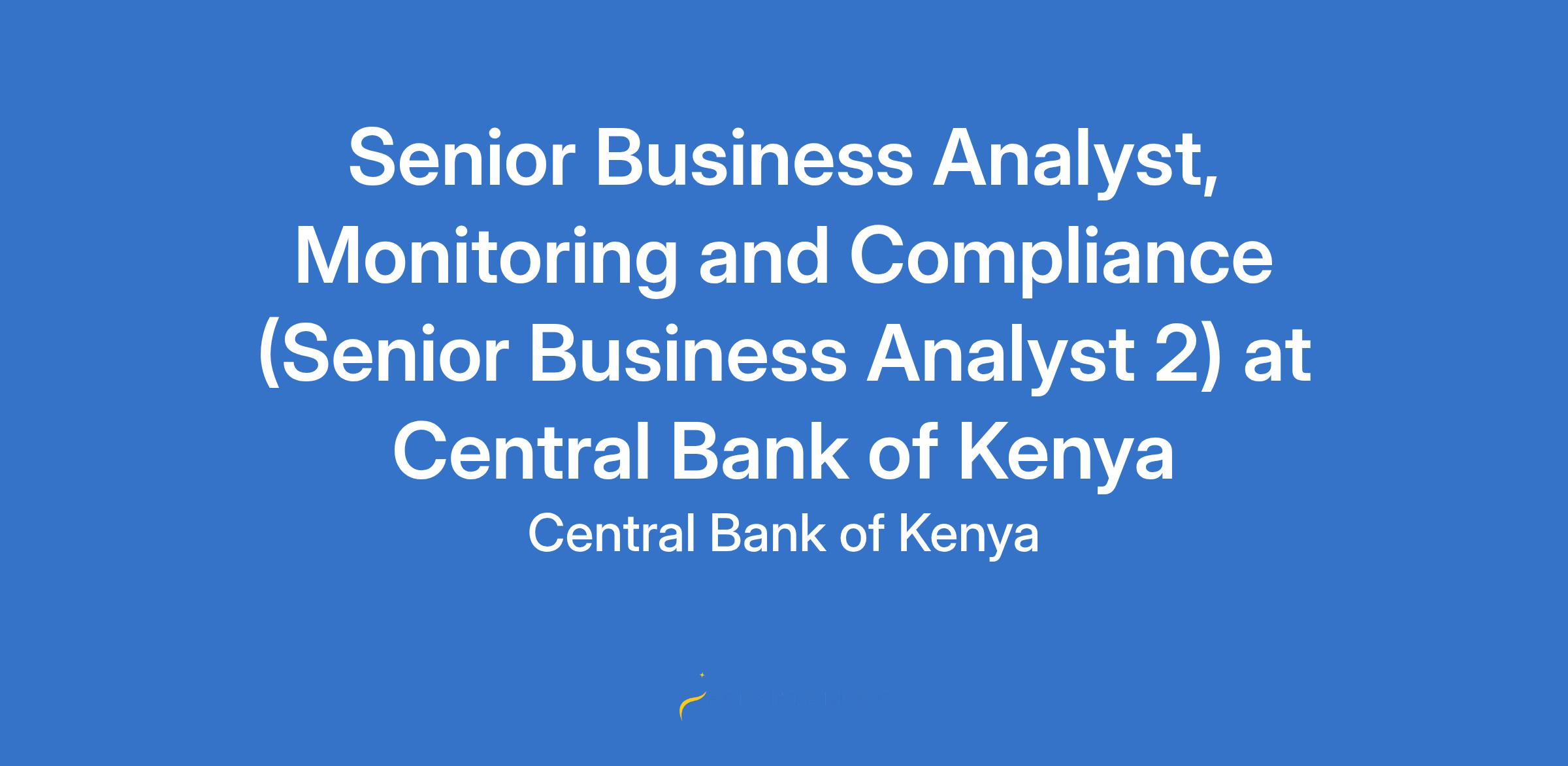 Senior Business Analyst, Monitoring and Compliance (Senior Business Analyst 2) at Central Bank of Kenya