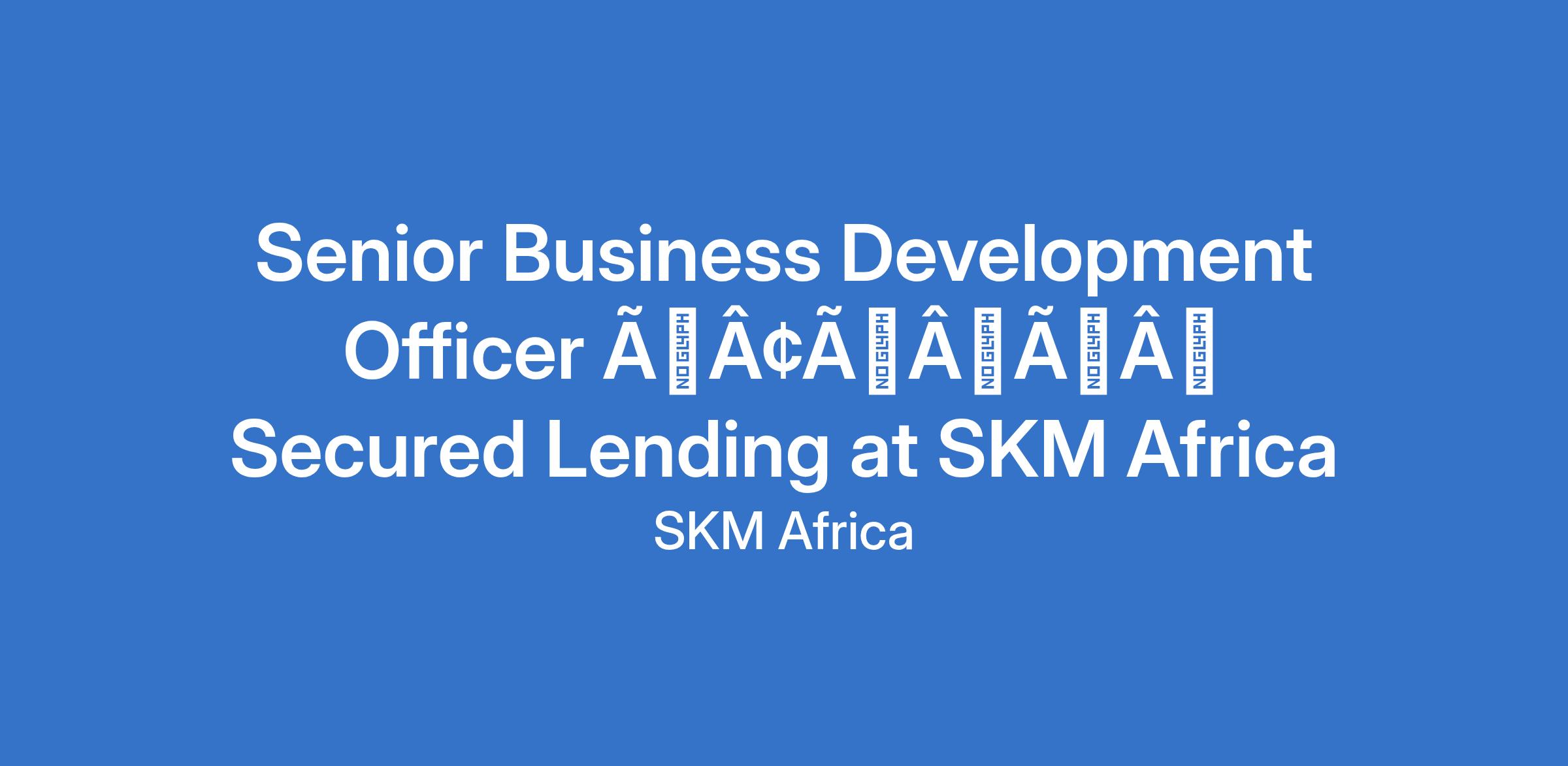 Senior Business Development Officer âÃÂàSecured Lending at SKM Africa