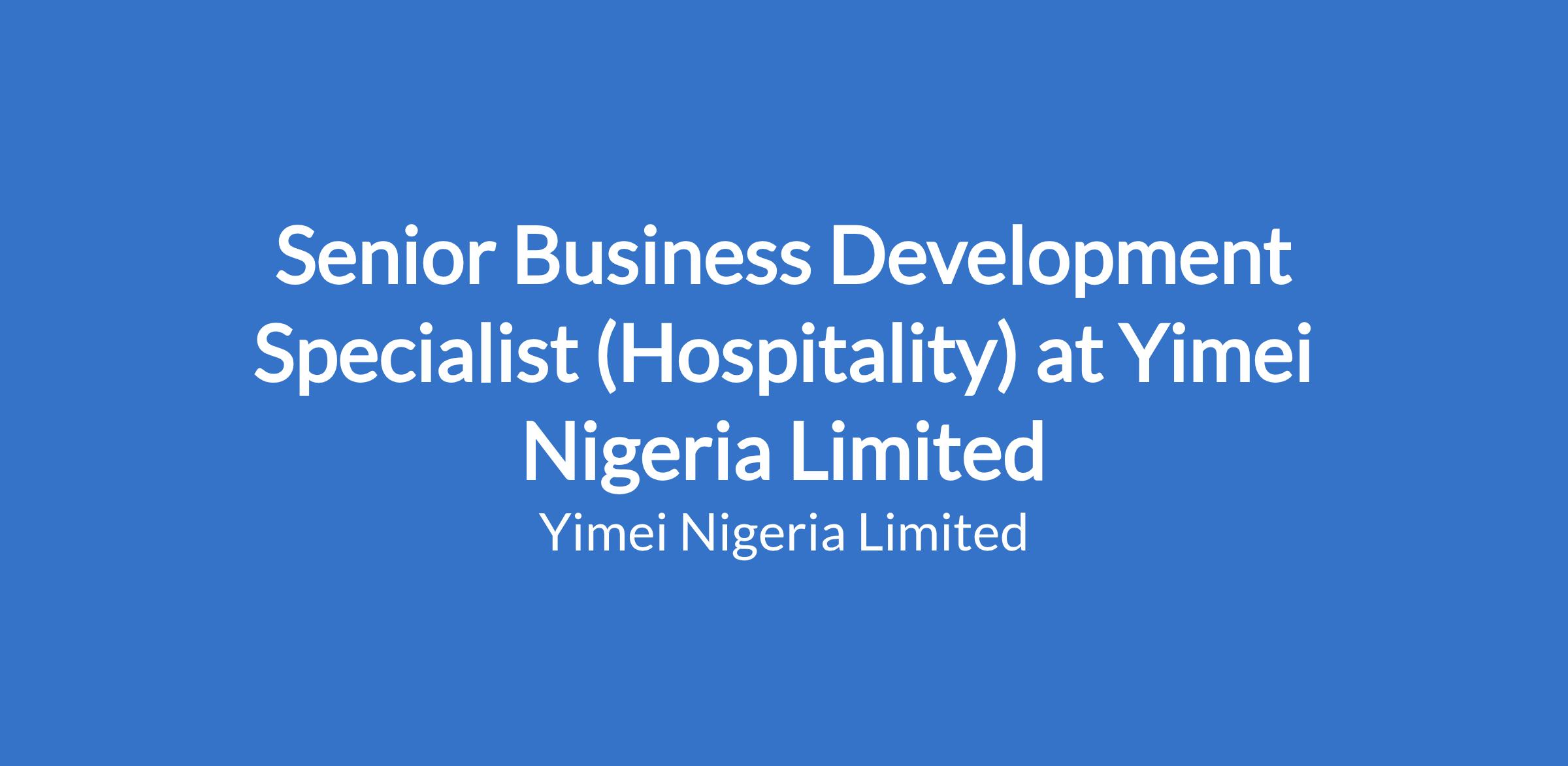 Yimei Nigeria Limited is seeking an experienced and result-driven Senior Business Development Specialist with a strong background in the hospitality industry.