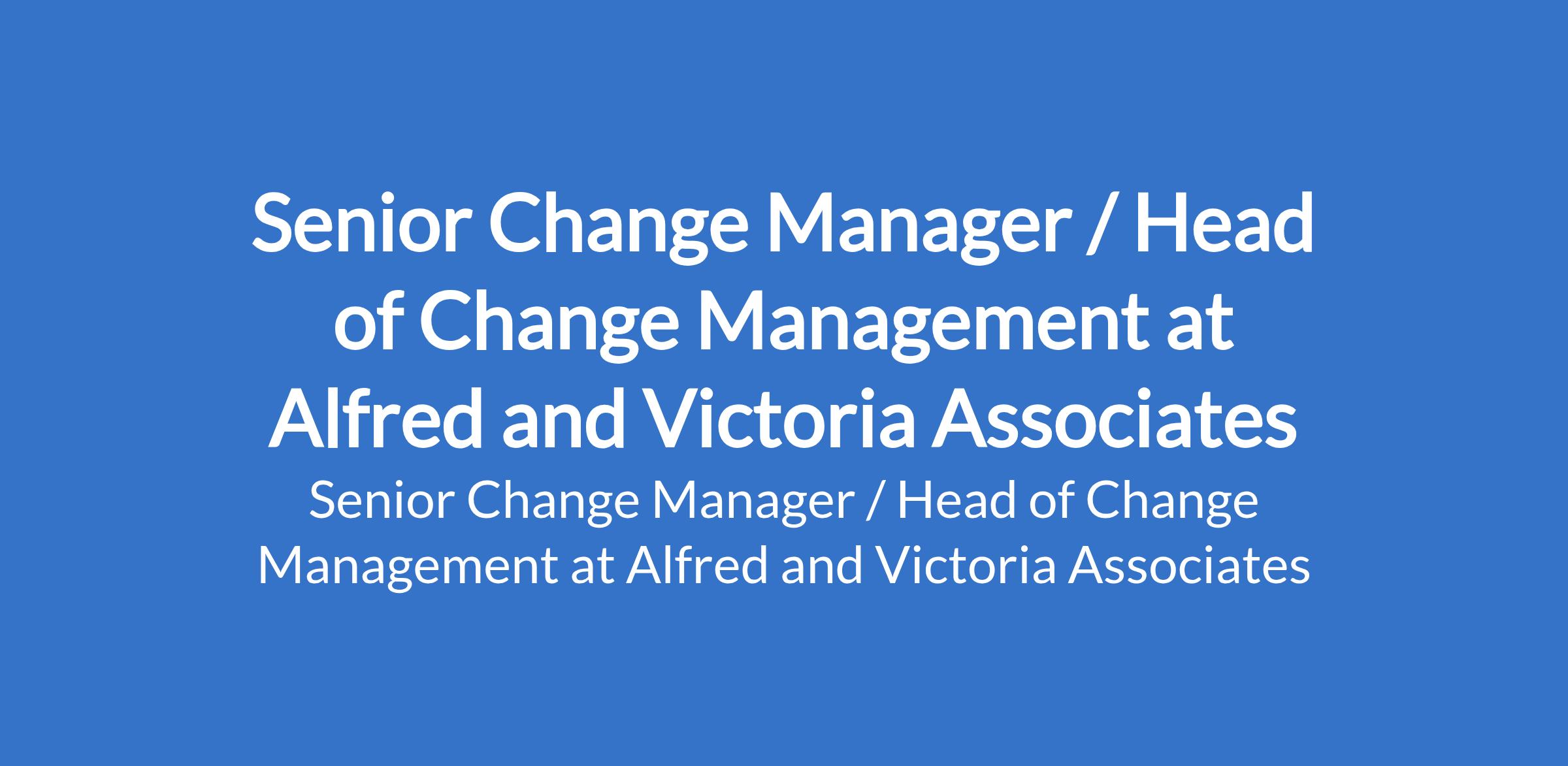 Alfred and Victoria Associates is recruiting to fill the position of: Senior Change Manager / Head of Change Management. The position is located in Lagos State. Interested candidates should possess a Bachelor's Degree in Business, HR, Strategy, or related fields with 8 - 12 years of experience in change management, transformation, or organizational development.