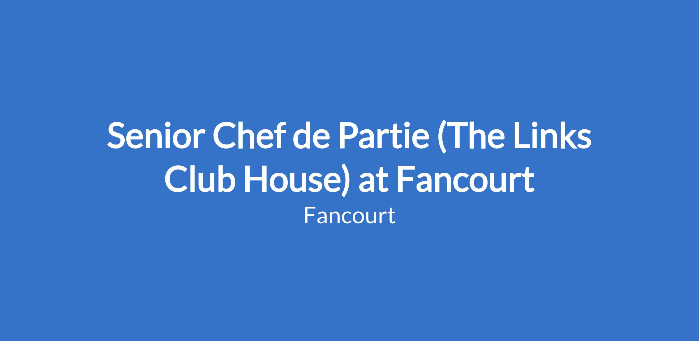 Senior Chef de Partie (The Links Club House) at Fancourt