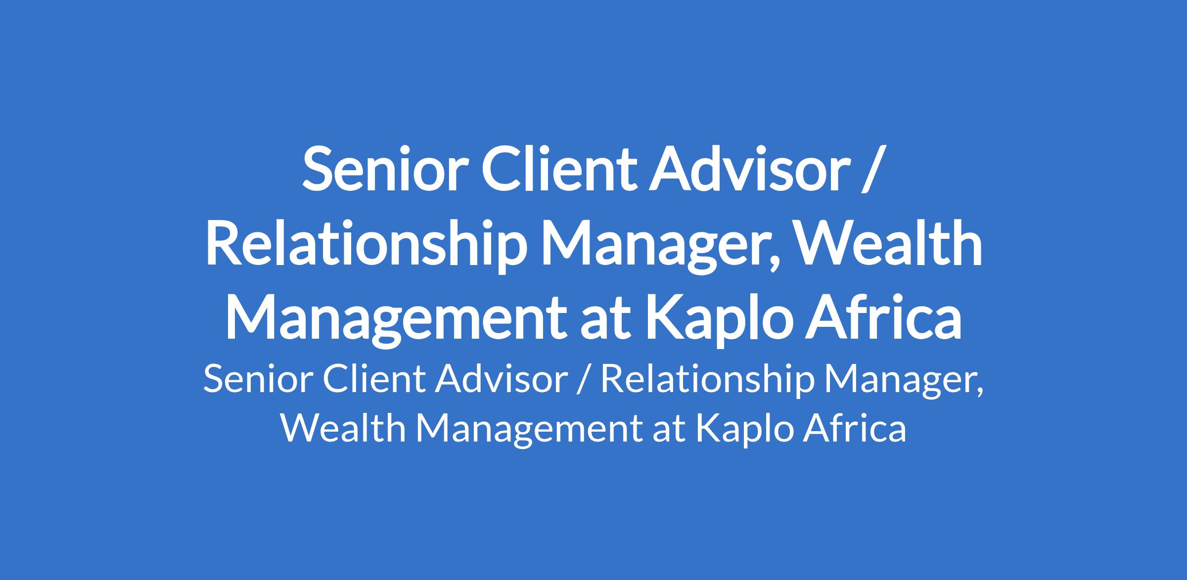 Kaplo Africa is recruiting to fill the position of: Senior Client Advisor / Relationship Manager, Wealth Management. The position is located in Lagos State. Interested candidates should possess a Bachelors Degree in Finance, Economics, Business or related field with a minimum of 10+ years experience in private banking, wealth management, family office, or asset management.
