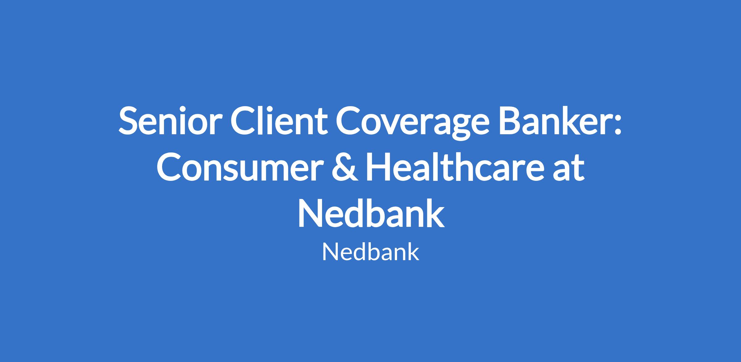 Senior Client Coverage Banker: Consumer & Healthcare at Nedbank