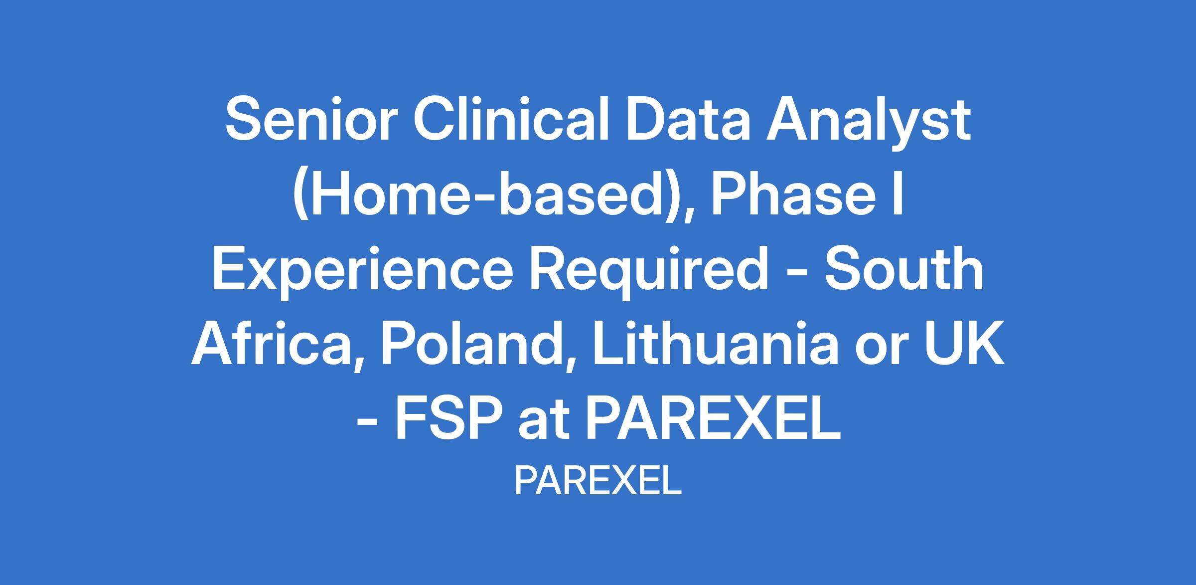 Senior Clinical Data Analyst (Home-based), Phase I Experience Required - South Africa, Poland, Lithuania or UK - FSP at PAREXEL