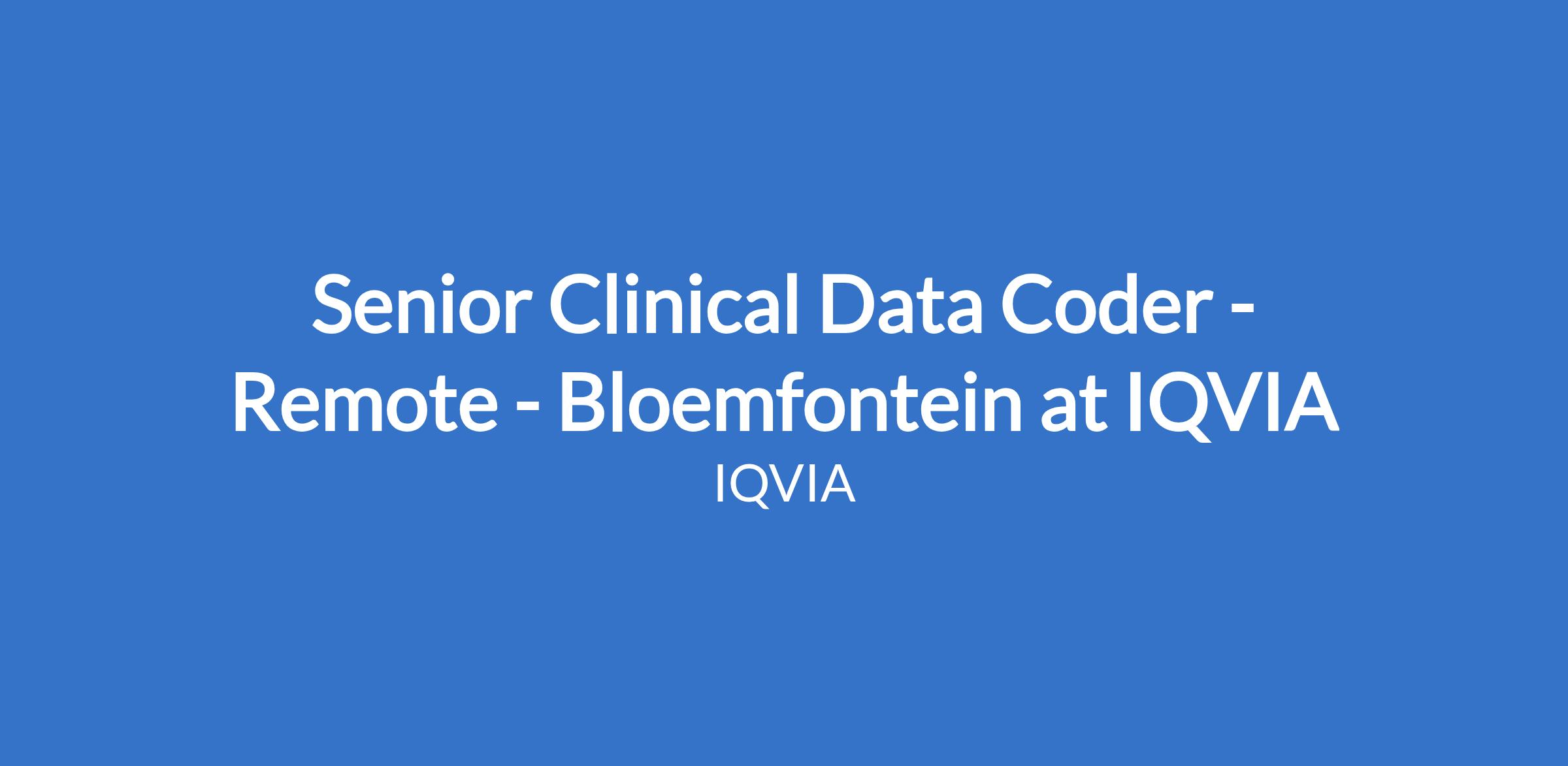 Senior Clinical Data Coder - Remote - Bloemfontein at IQVIA