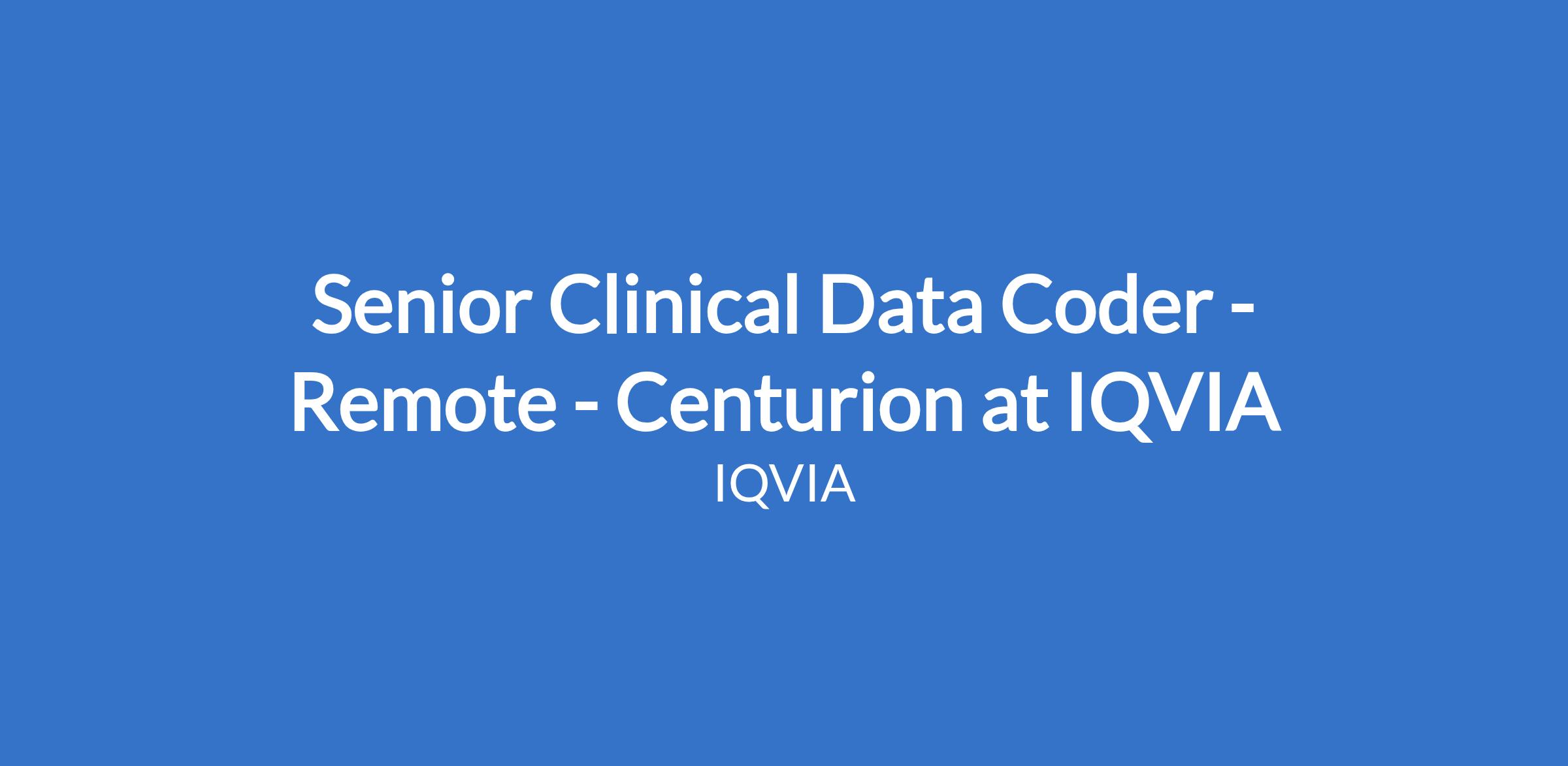 Senior Clinical Data Coder - Remote - Centurion at IQVIA