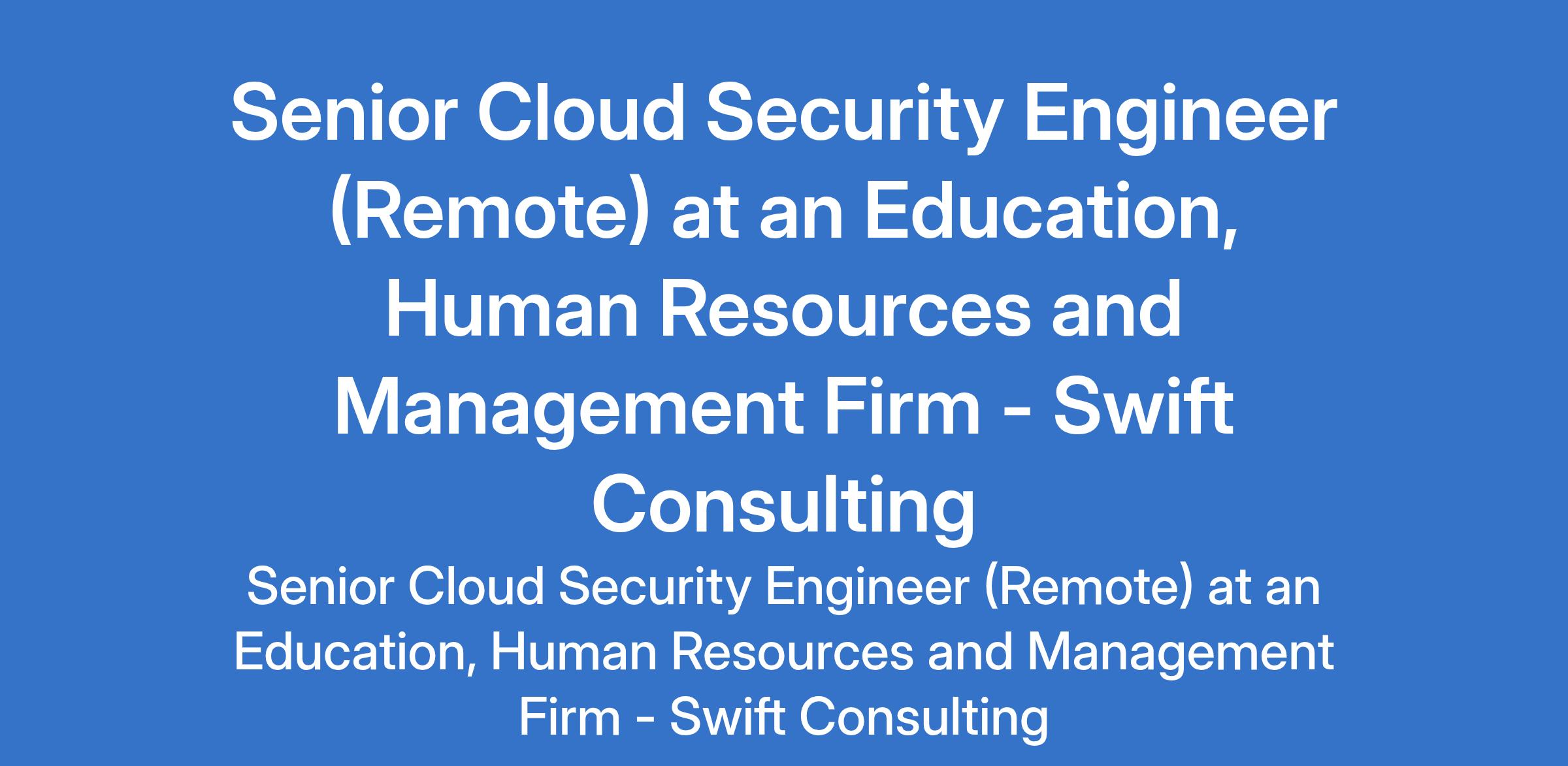 Swift Consulting - Our client, an Education, Human Resources and Management firm is recruiting to fill the position of: Senior Cloud Security Engineer. The position is located in Lagos State (Remote). Interested candidates should possess a Bachelors Degree in Computer Science, Cybersecurity, or a related field with 7 years of experience in cybersecurity, with at least 3 years in cloud security.
