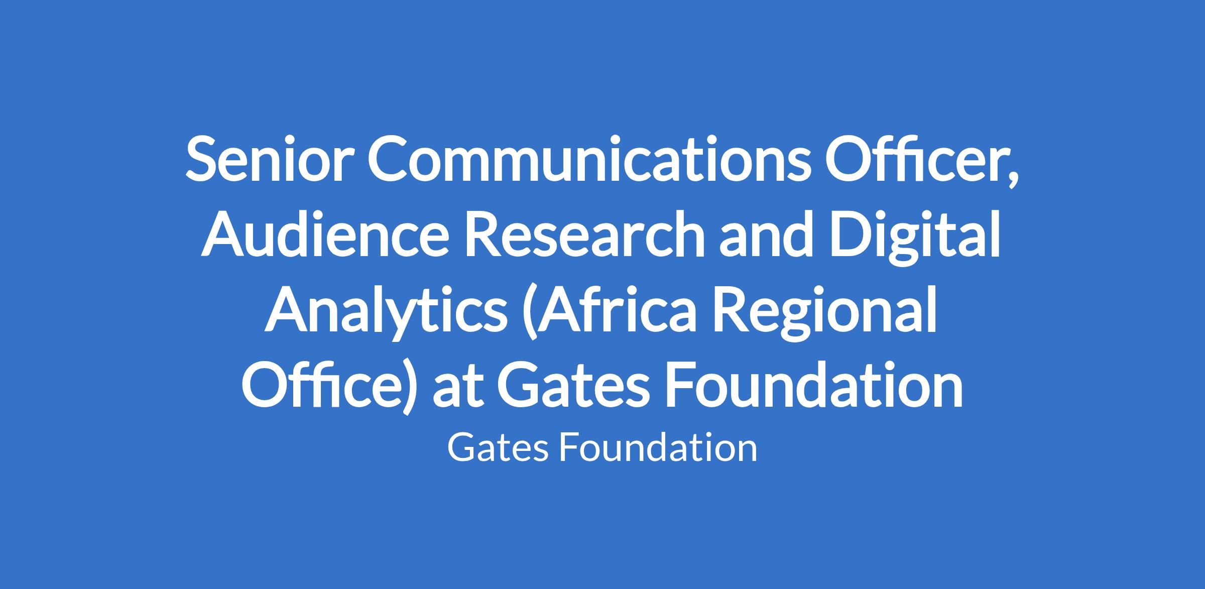 Senior Communications Officer, Audience Research and Digital Analytics (Africa Regional Office) at Gates Foundation