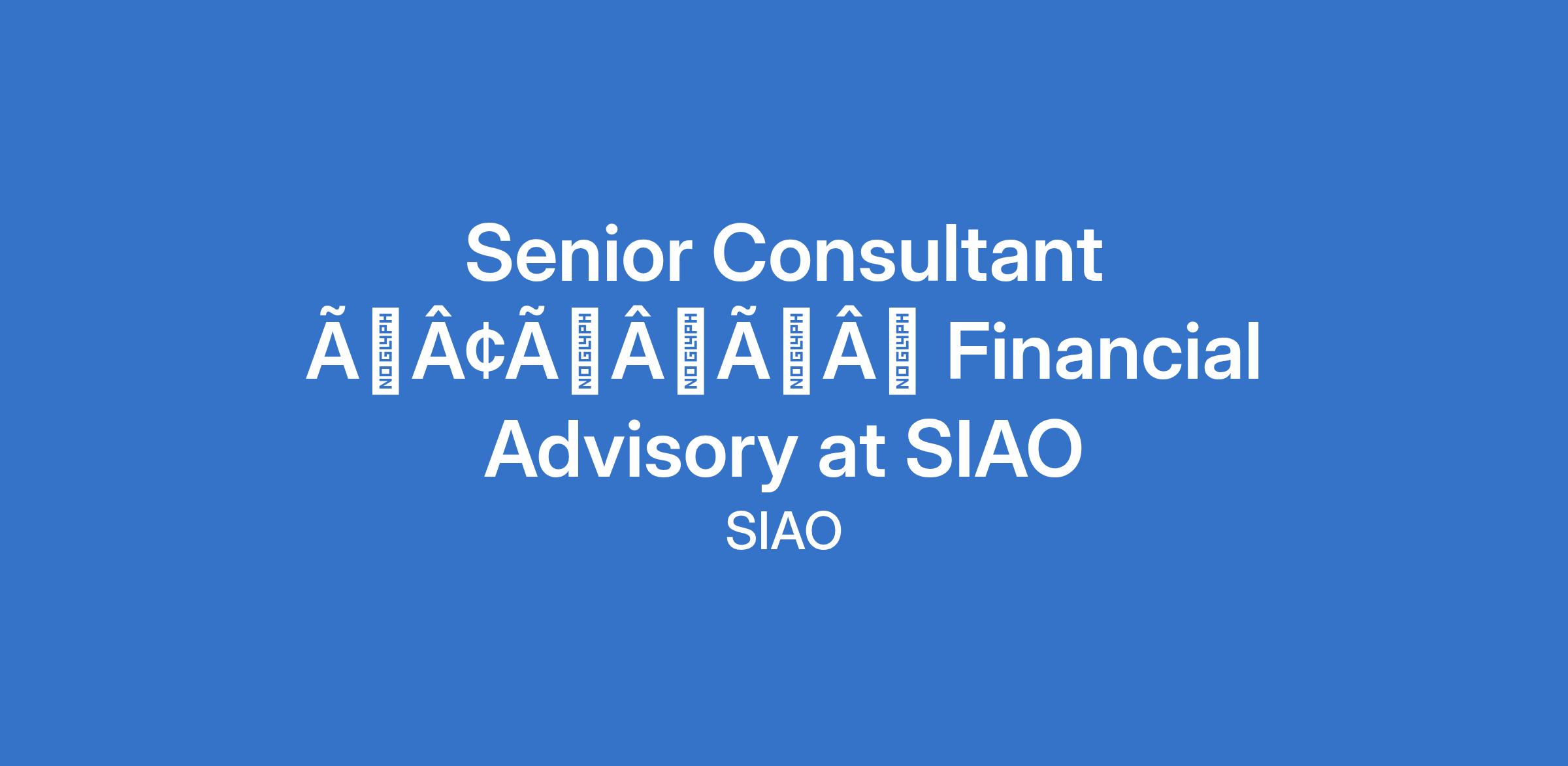 Senior Consultant âÃÂàFinancial Advisory at SIAO