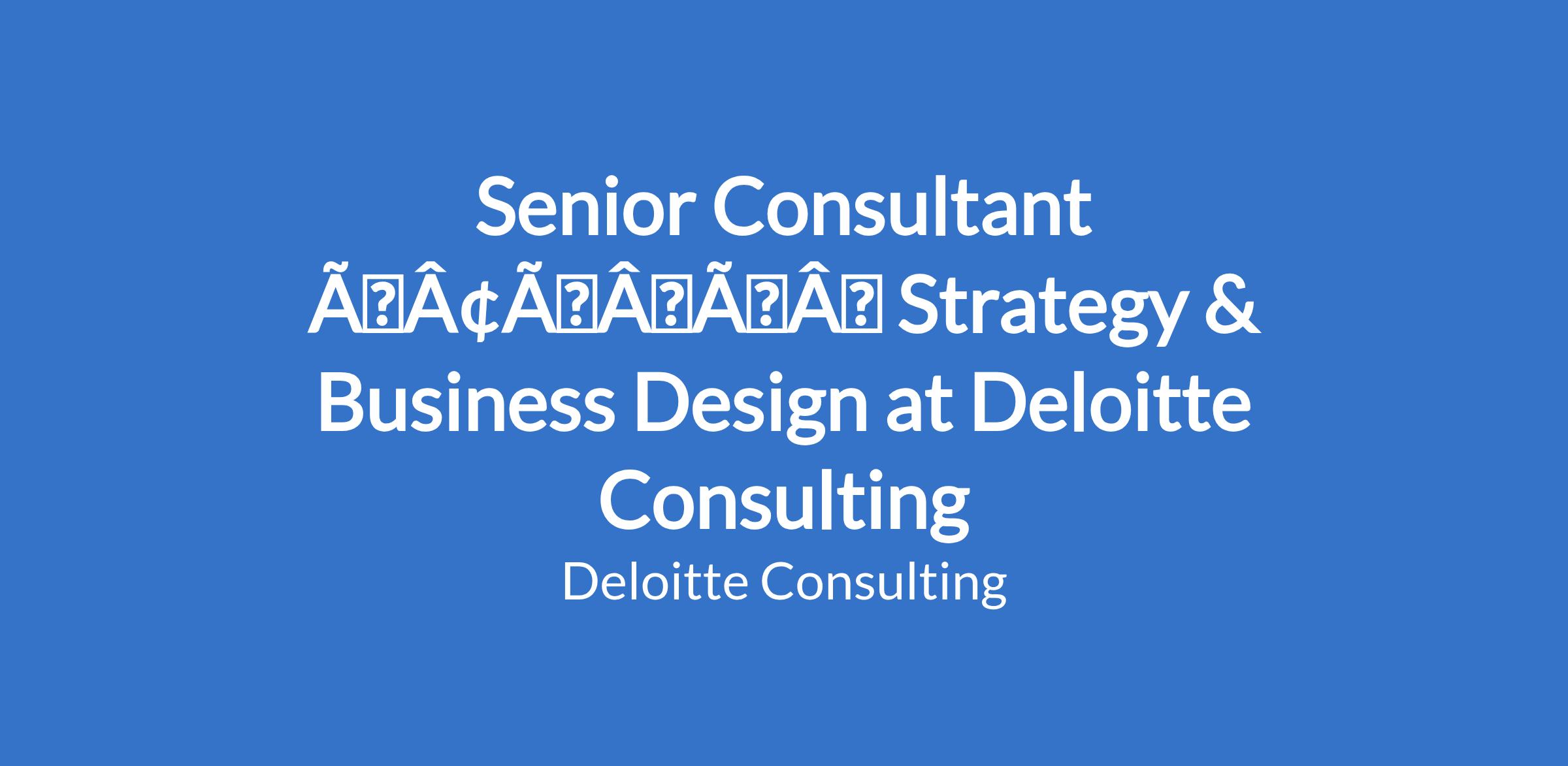 Senior Consultant âÃÂàStrategy & Business Design at Deloitte Consulting