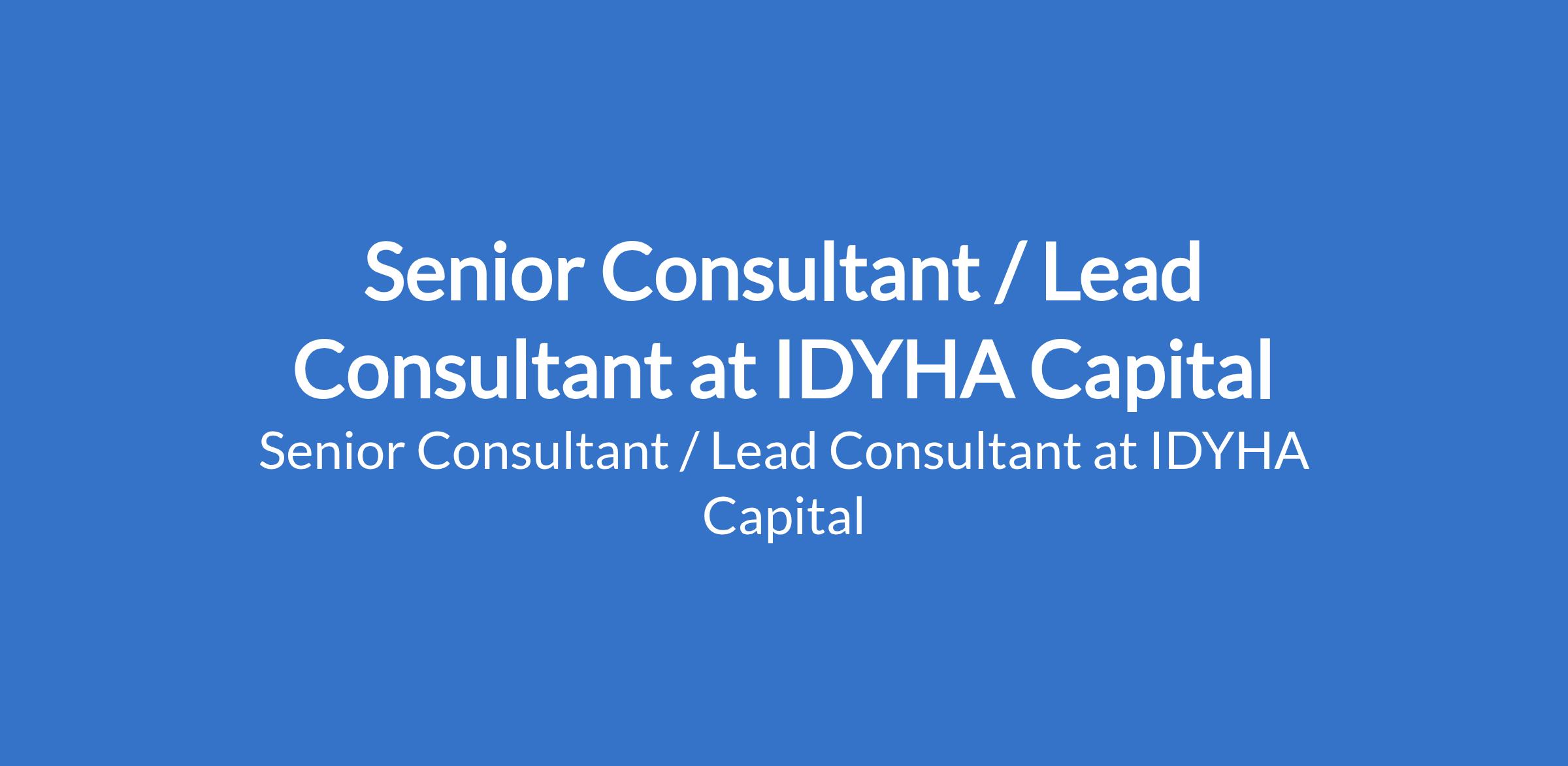 Senior Consultant / Lead Consultant at IDYHA Capital