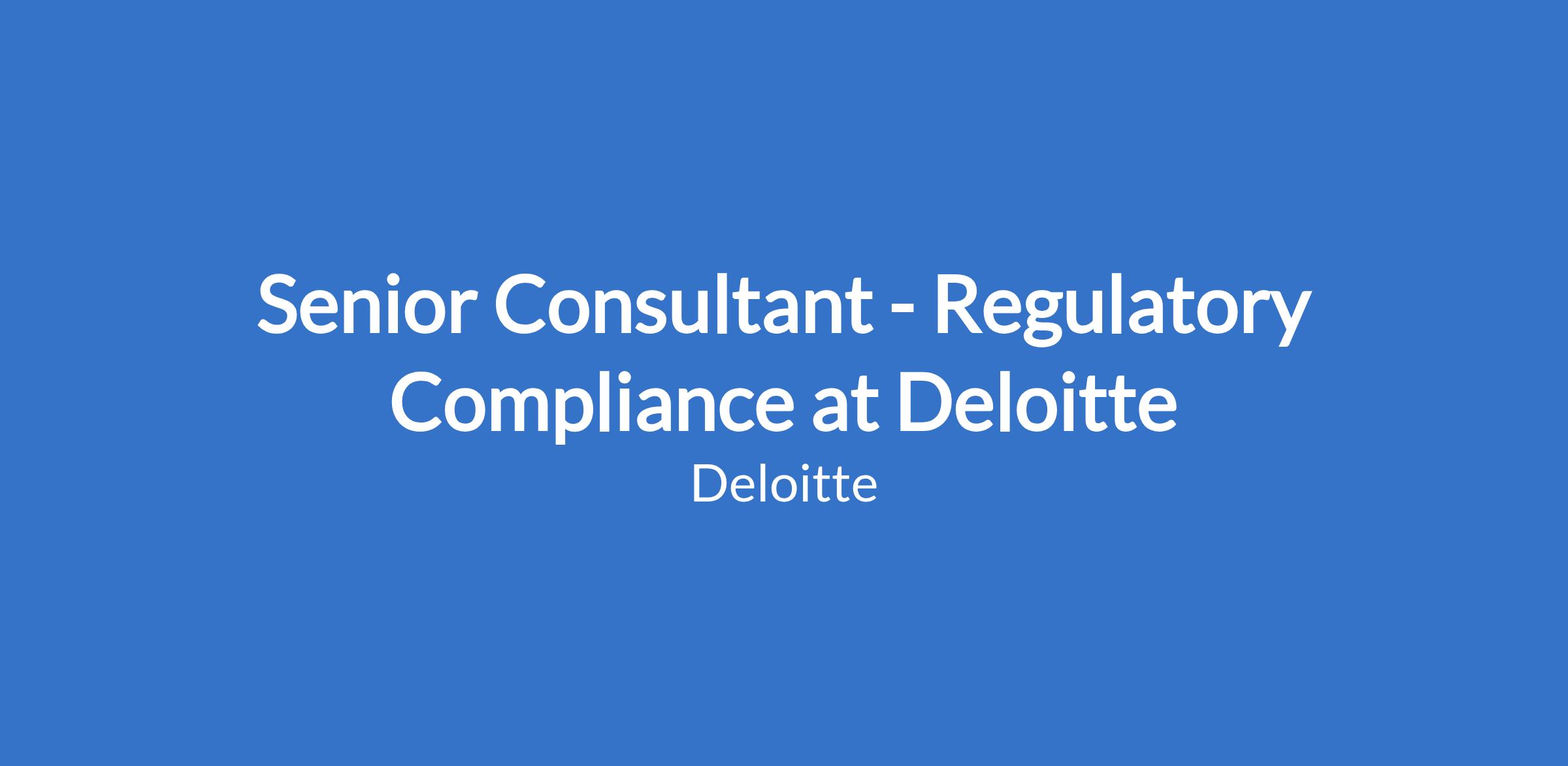 Senior Consultant - Regulatory Compliance at Deloitte