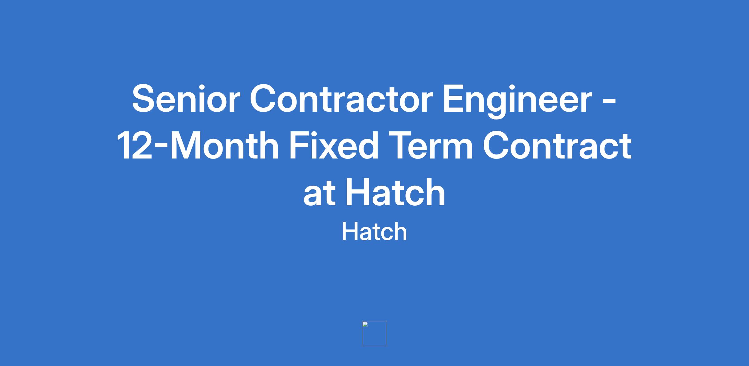 Senior Contractor Engineer - 12-Month Fixed Term Contract at Hatch