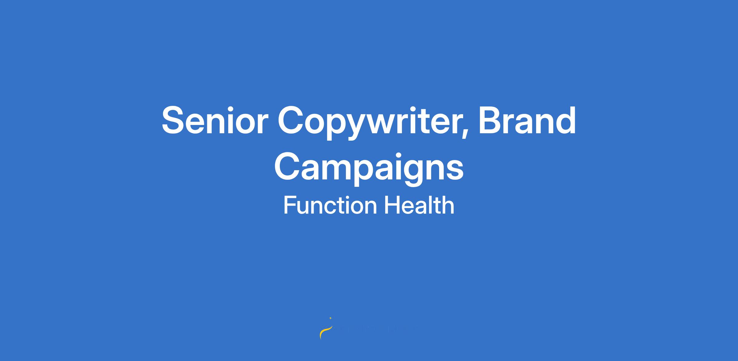 We’re seeking a Senior Copywriter, Brand Campaigns to join our Brand team, where you’ll play a key role in shaping Function Health’s identity through high-impact, emotionally resonant campaigns. This team is responsible for the creative that defines how the world sees and feels Function—our commercials, flagship brand moments, and hero content that inspires trust, drives awareness, and builds lasting connections.