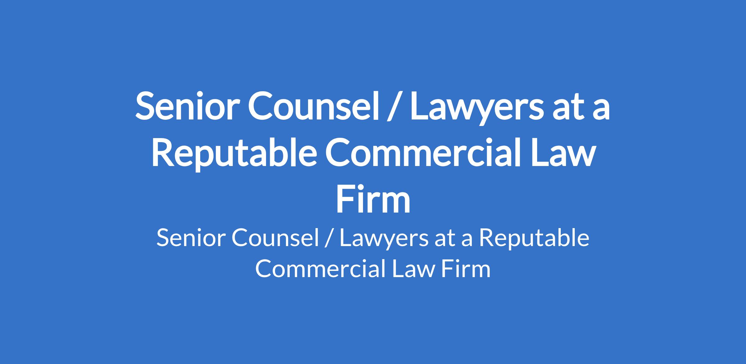 Senior Counsel / Lawyers at a Reputable Commercial Law Firm