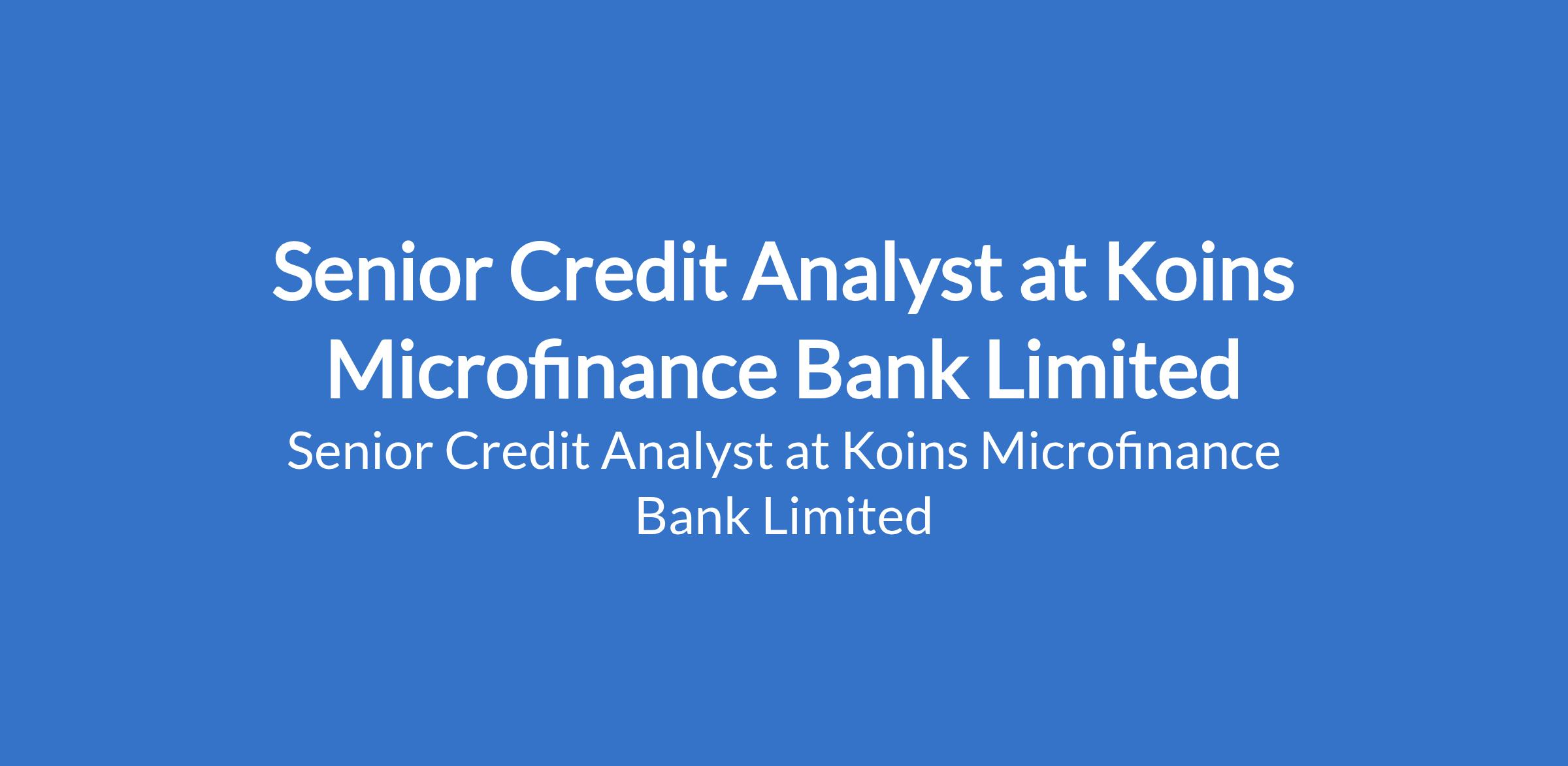 Koins Microfinance Bank Limited is recruiting to fill the position of: Senior Credit Analyst. The position is located in Lagos State. Interested candidates should possess a Bachelor's Degree / HND preferably in Banking and Finance, Accounting, Business Administration, Economics. (other disciplines can be considered) with a minimum of 2 years experience as an SME analyst.