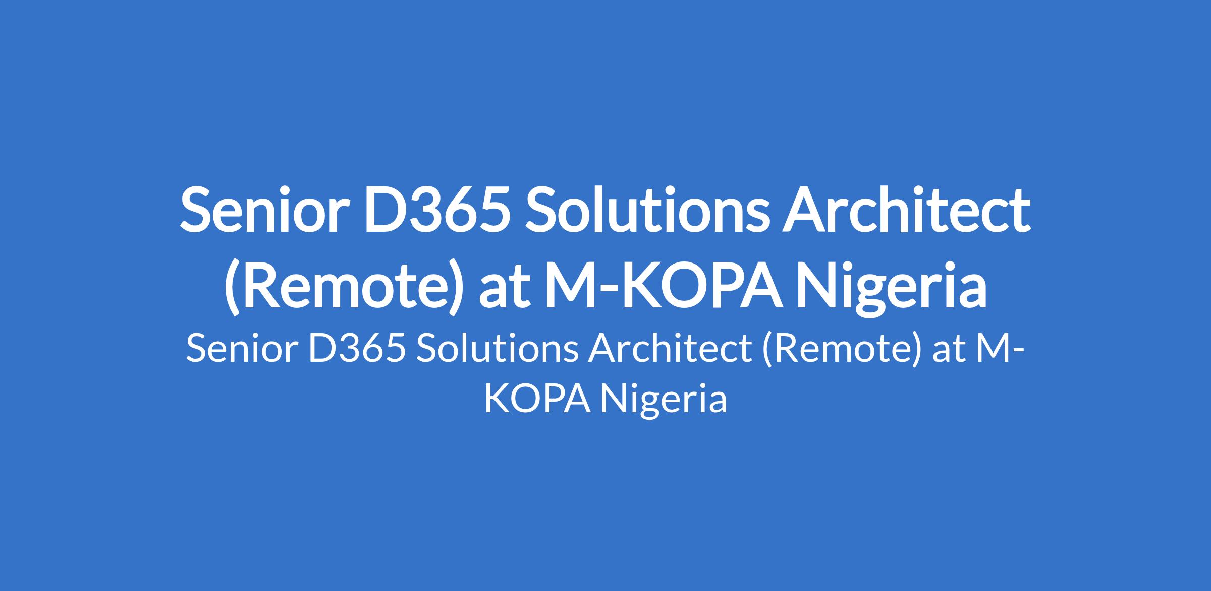 M-KOPA Nigeria is recruiting to fill the position of: Senior D365 Solutions Architect. The position is located in Lagos State. Interested candidates should possess relevant qualifications with 5+ years designing, configuring, and deploying Microsoft D365 Finance & Operations solutions