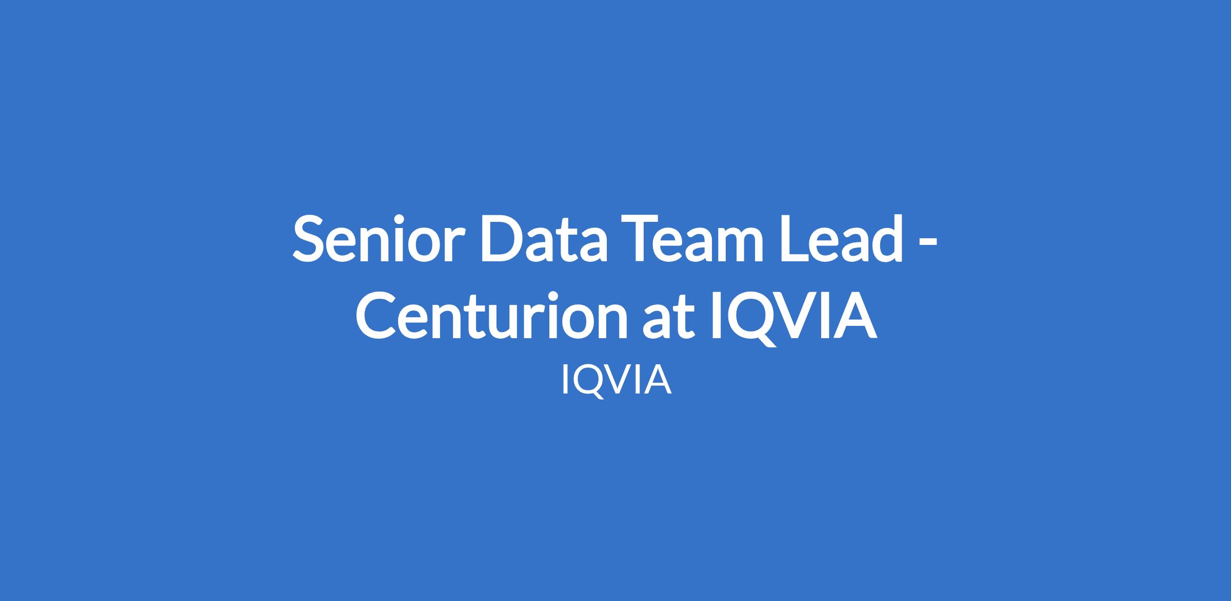 Senior Data Team Lead - Centurion at IQVIA