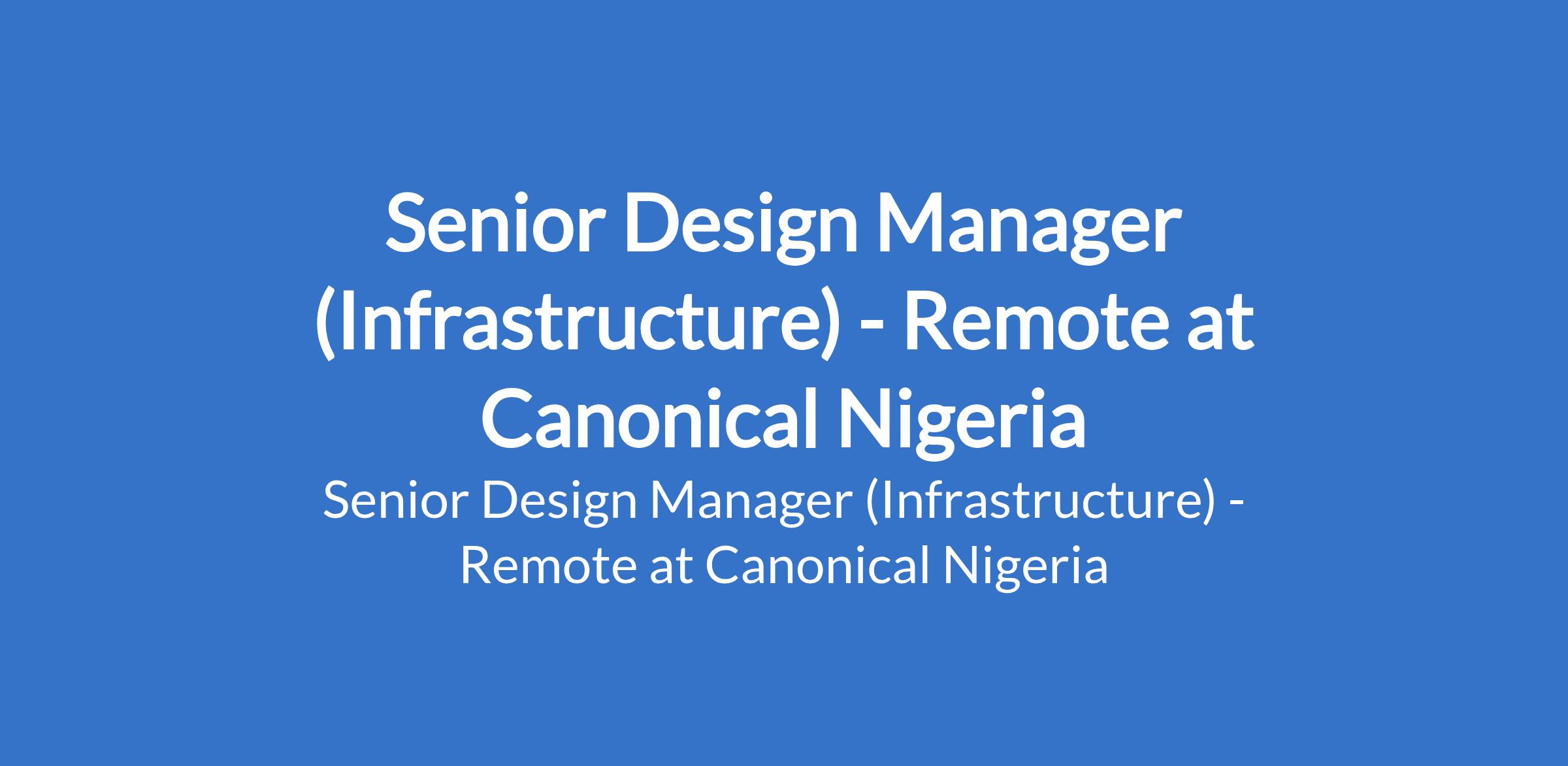 Canonical Nigeria is recruiting to fill the position of: Senior Design Manager (Infrastructure). The position is located in Lagos State (Remote). Interested candidates should possess relevant qualifications.