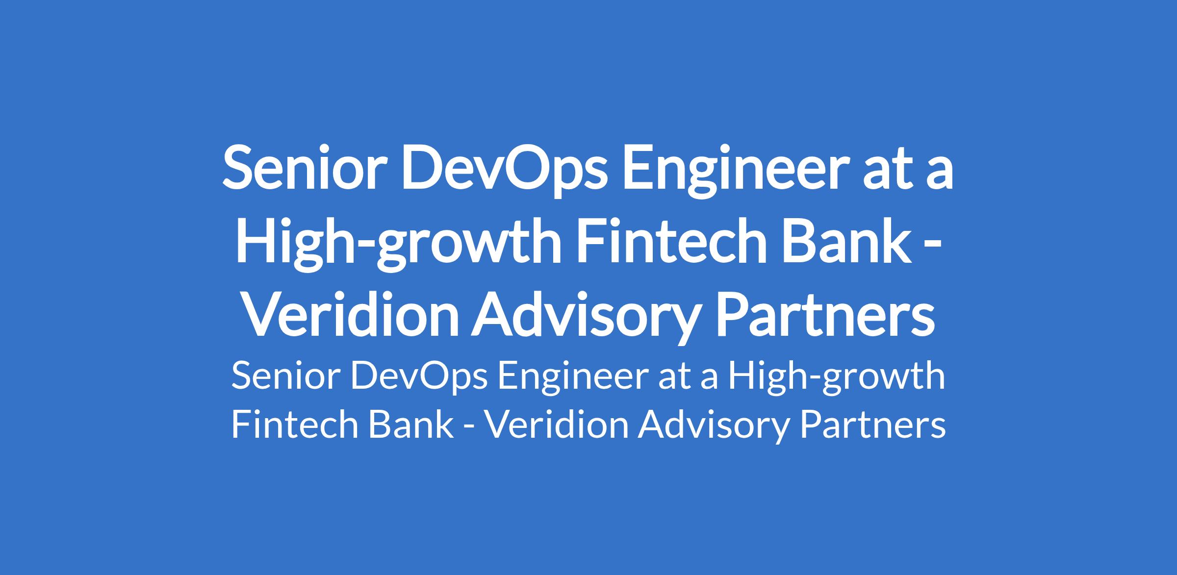 Veridion Advisory Partners - Our client, a high-growth fintech bank is recruiting to fill the position of: Senior DevOps Engineer. The position is located in Lagos State. Interested candidates should posses a Bachelors Degree in Computer Science, Engineering, or related disciplines with a minimum of 8 years hands-on DevOps or Platform Engineering experience.