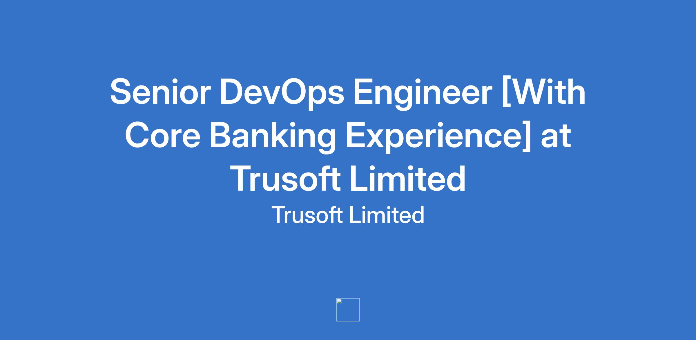 Senior DevOps Engineer [With Core Banking Experience] at Trusoft Limited