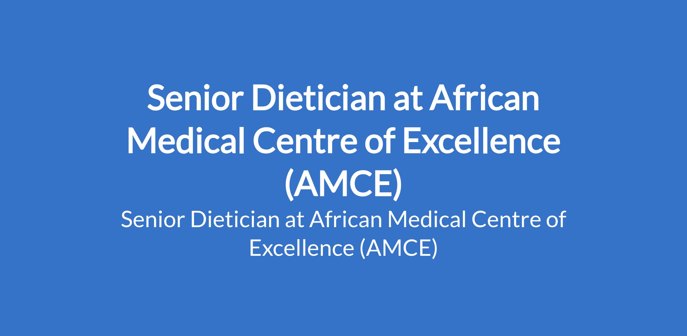African Medical Centre of Excellence (AMCE) is recruiting to fill the position of: Senior Dietician. Interested candidates should possess a Bachelors Degree in Nutrition and Dietetics, Food Science and Nutrition, or a related field with 5-7 years of post-qualification experience as a clinical dietitian in a hospital setting; at least 2 years of experience in a supervisory or senior role, demonstrating leadership and clinical mentorship capabilities is mandatory.