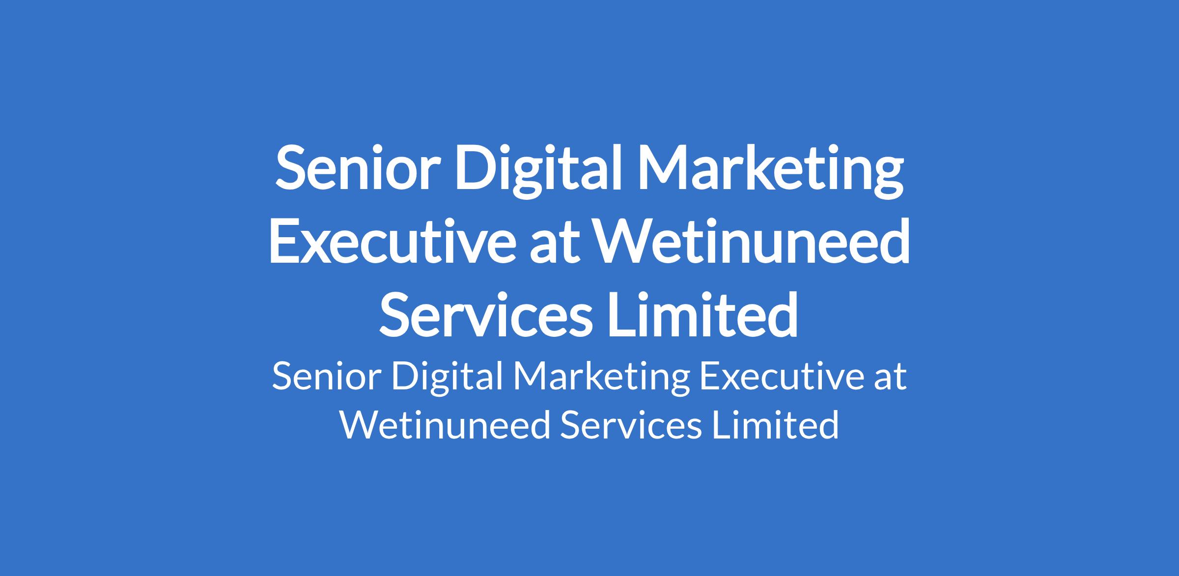 Wetinuneed Services Limited is recruiting to fill the position of: Senior Digital Marketing Executive. The position is located in Lekki County, Lagos State. Salary: N250,000 - N300,000 monthly. Interested candidates should possess a Bachelor's Degree in Marketing, Mass Communication, Digital Media, or a related field with 46 years proven experience in digital marketing, preferably within advertising, media, or e-commerce