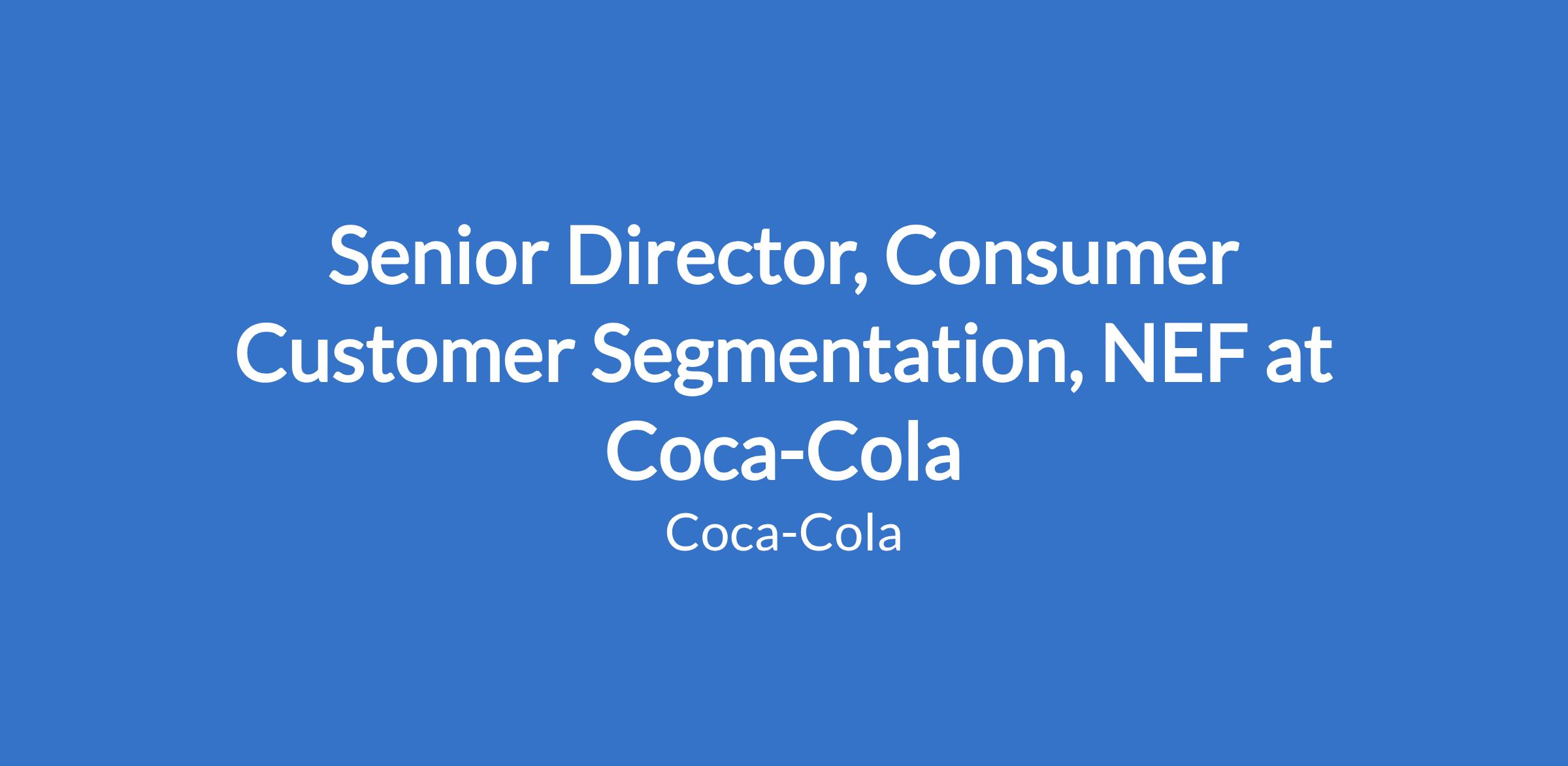 Senior Director, Consumer Customer Segmentation, NEF at Coca-Cola