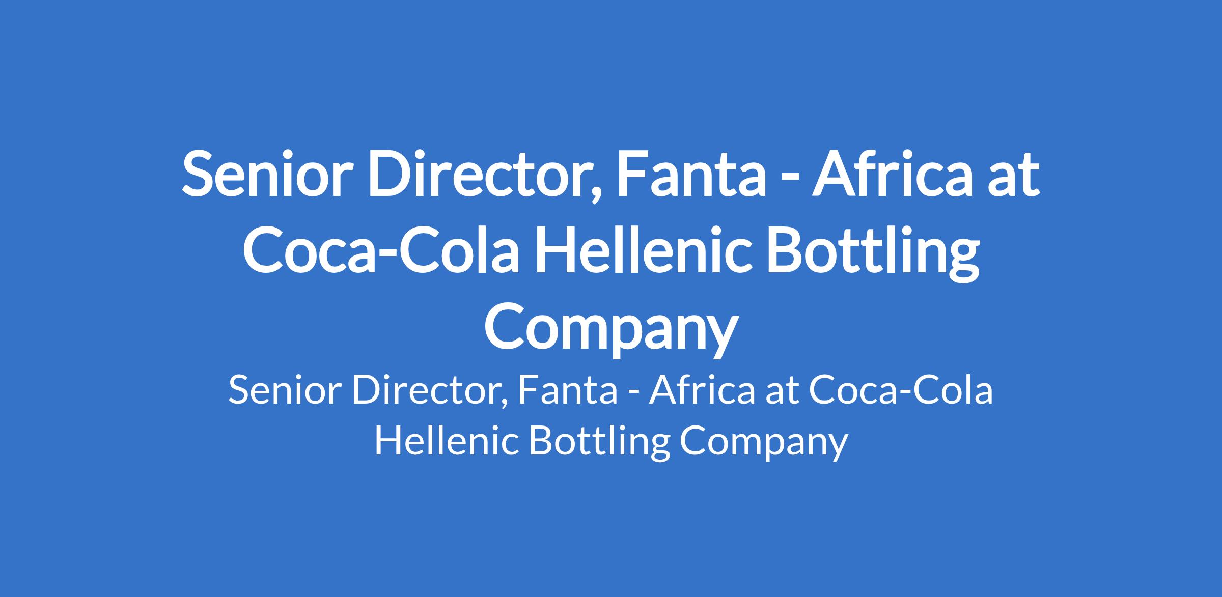Coca-Cola Hellenic Bottling Company is recruiting to fill the position of: Senior Director, Fanta - Africa. The position is located in Lagos State. Interested candidates should possess a Bachelor`s Degree with 10 + years of experience in brand management and/or marketing in consumer-packaged goods, beverage experience ideal.