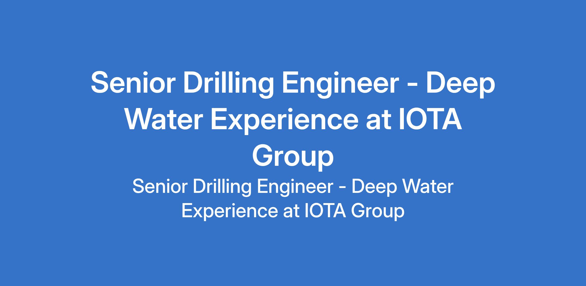 IOTA Group is recruiting to fill the position of: Senior Drilling Engineer - Deep Water Experience. The position is located in Lagos State. Interested candidates should possess a Bachelors Degreein Petroleum Engineering or related field (Masters degree preferred), Professional Engineering (PE) licenseor equivalent certification with 810 years of experiencein drilling engineering,