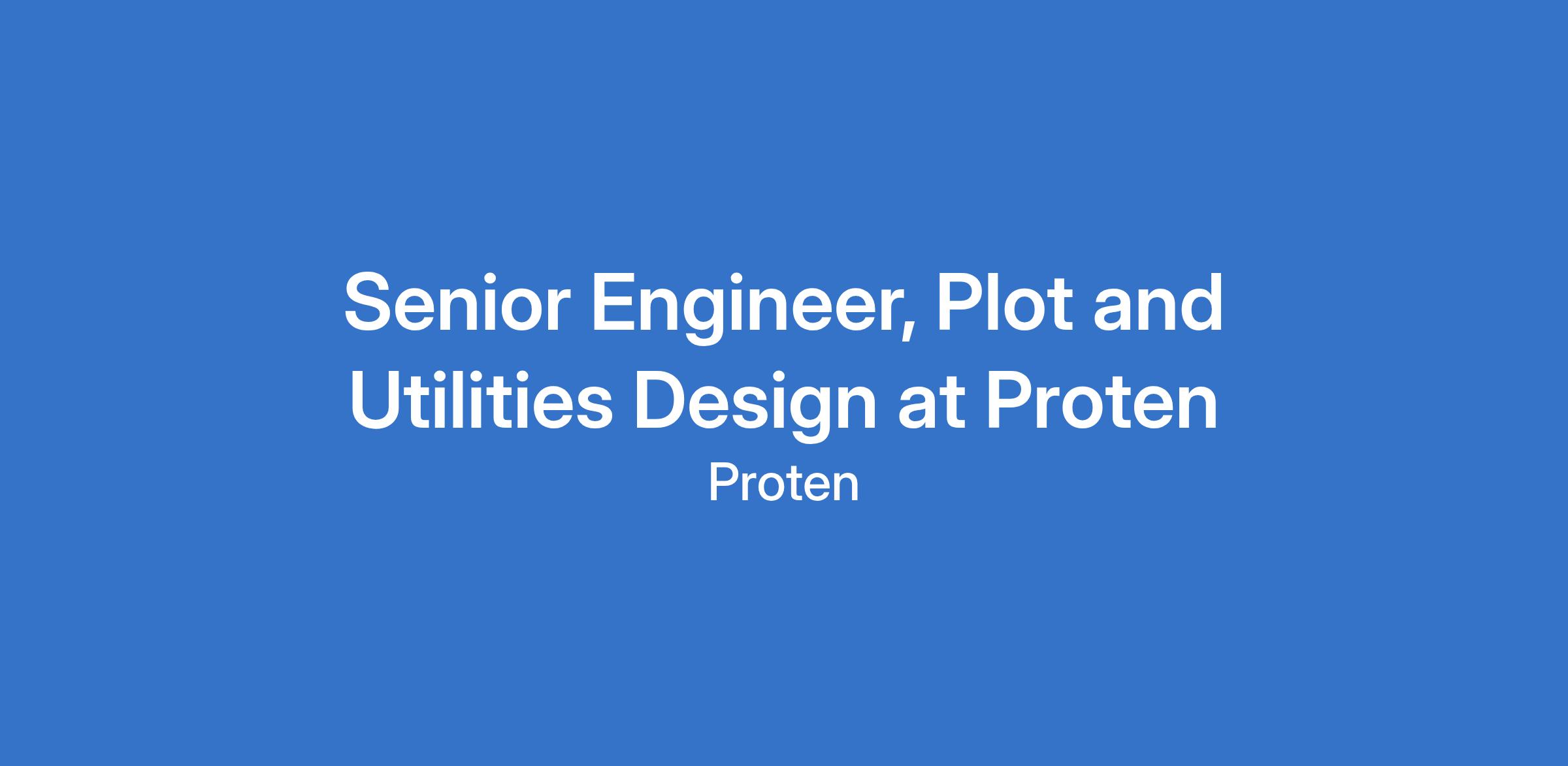 Senior Engineer, Plot and Utilities Design at Proten