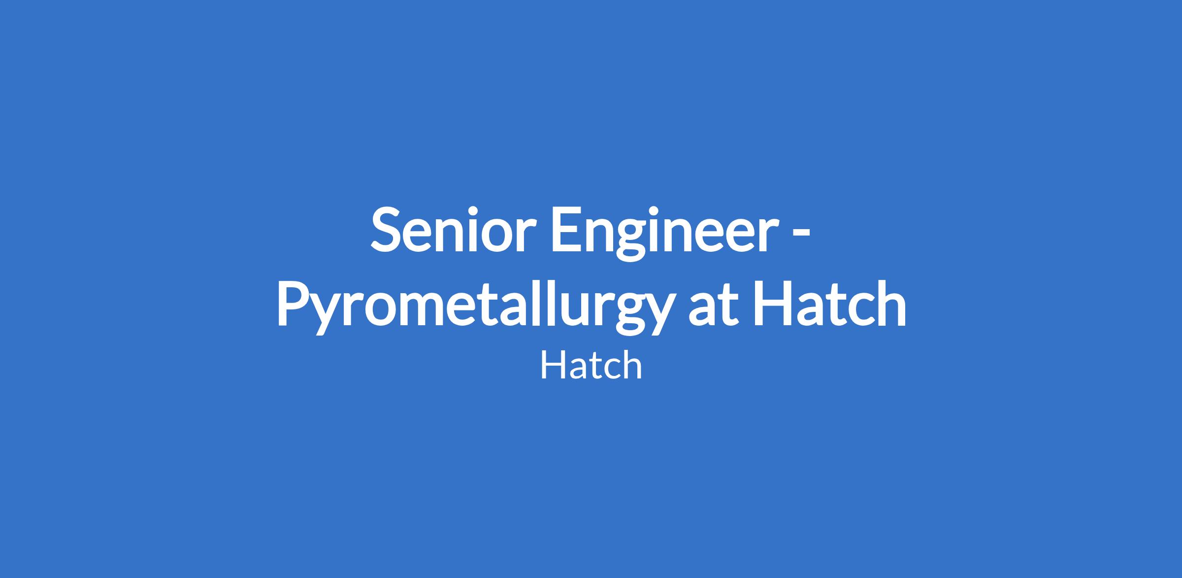 Senior Engineer - Pyrometallurgy at Hatch