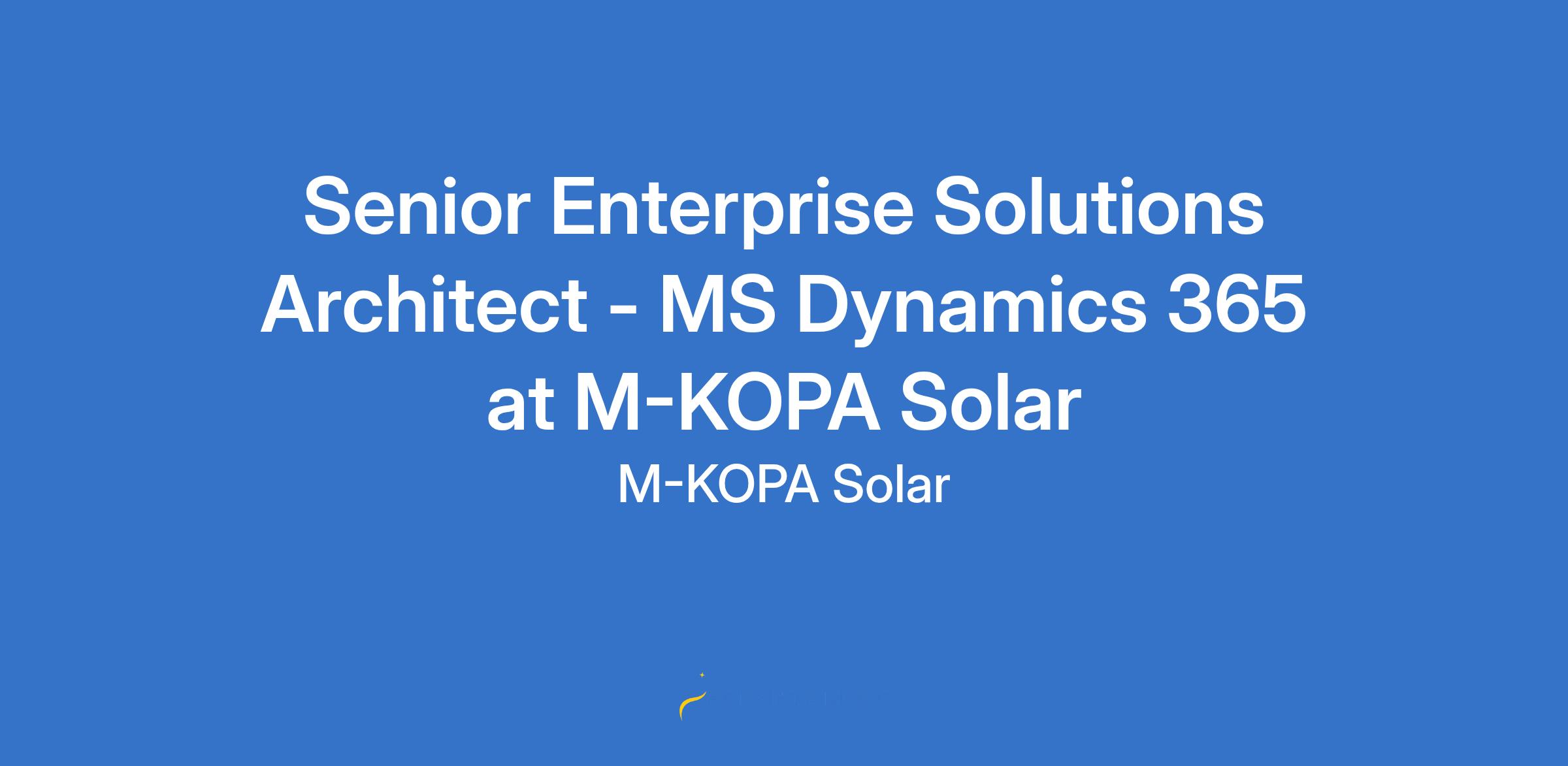 Senior Enterprise Solutions Architect - MS Dynamics 365 at M-KOPA Solar