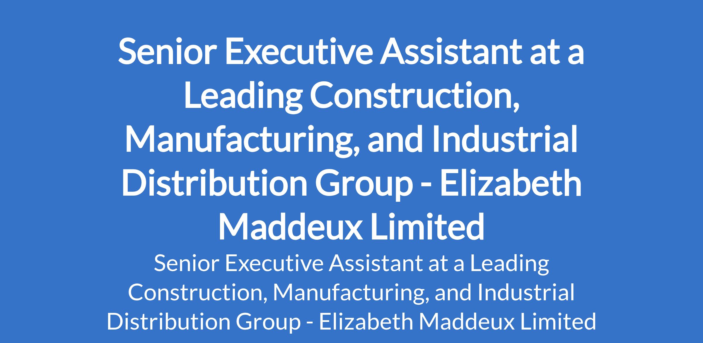 Elizabeth Maddeux Limited - Our client, a leading Construction, Manufacturing, and Industrial Distribution group, is recruiting to fill the position of: Senior Executive Assistant. The position is located in Ikeja, Lagos State. Salary: N400,000 - N500,000 per month. Interested candidates should possess a Bachelors Degree in Business Administration, Management, Engineering Management, Marketing, or related discipline with 4 8 years of experience supporting senior executives, preferably within construction, engineering, manufacturing, or industrial distribution companies.