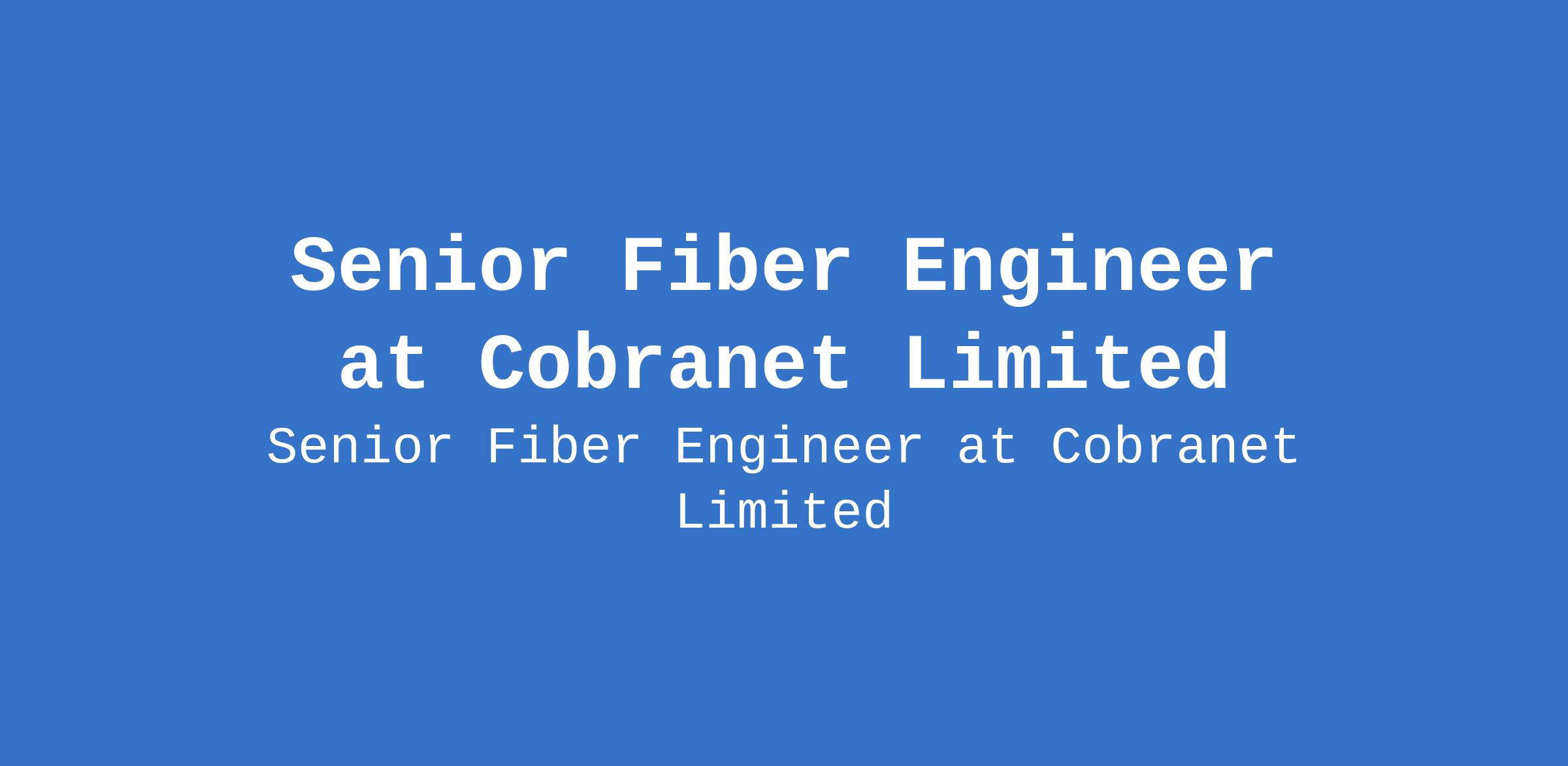 Cobranet Limited is recruiting to fill the position of: Senior Fiber Engineer. The position is located in Lagos State. Interested candidates should possess a BSc or HND in Electrical/Electronic Engineering, Computer Engineering, Telecommunications, or a related field with a mimimum of 3 years relevant experience.