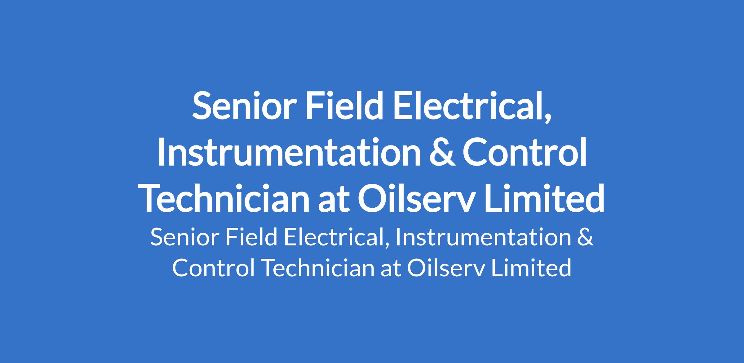 Oilserv Limited is recruiting to fill the position of: Senior Field Electrical, Instrumentation & Control Technician. The position is located in Rivers State. Interested candidates should possess a minimum of B. TECH in Electrical or Electrical / Electronics.