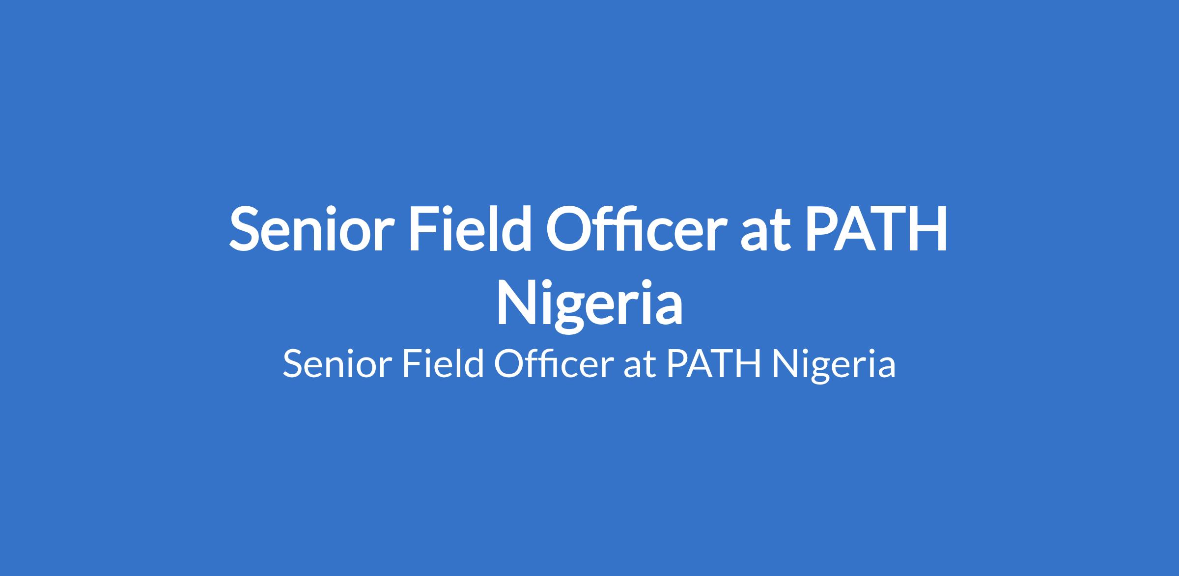 PATH Nigeria is recruiting to fill the position of: Senior Field Officer. The position is located in Kebbi State. Interested candidates should possess a Bachelors Degree in Public Health or a related field with at least 5 years of related programmatic experience working on health service delivery; experience in immunization service delivery strongly preferred.