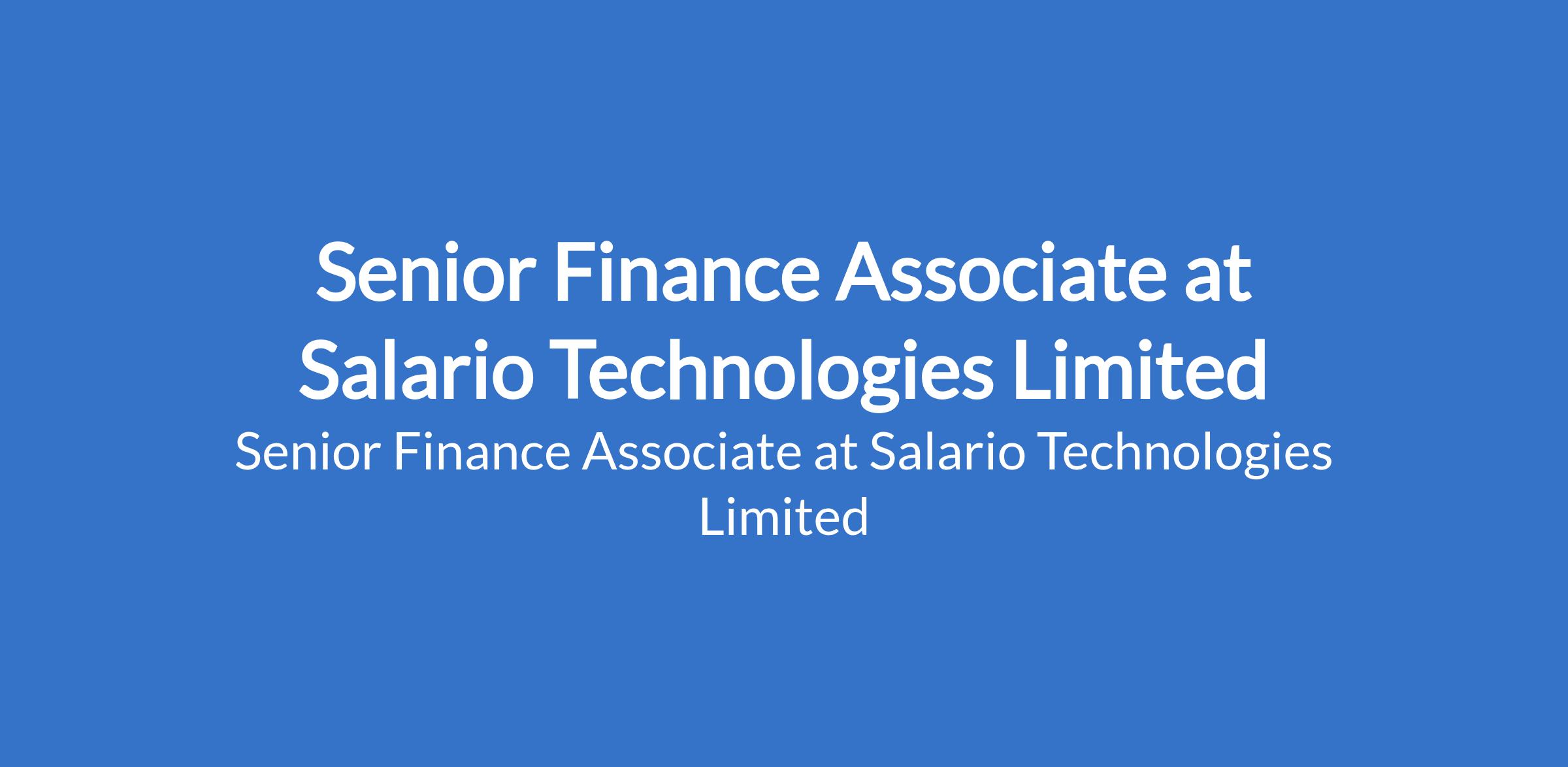 Salario Technologies Limited is recruiting to fill the position of: Senior Finance Associate. Interested candidates should possess a Bachelors Degree in Accounting, Finance, or a related discipline with 510 years of relevant experience in finance or accounting roles.