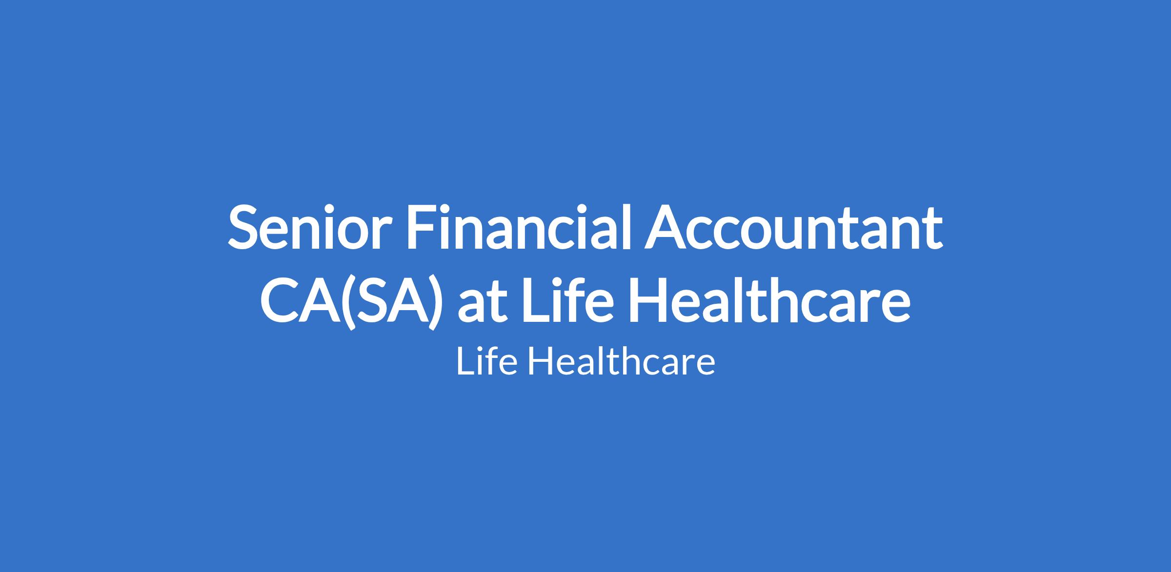 A permanent vacancy exists for a Senior Financial Accountant CA(SA) at the Financial Services Centre based at Life Healthcare Head Office in Dunkeld, reporting to the Finance Manager: Income & Expenses. The successful candidate will be responsible for the performance and management of the accounting processes to achieve compliance, standardisation and efficiency in the function, including but not limited to borrowings and Head Office IT packs.