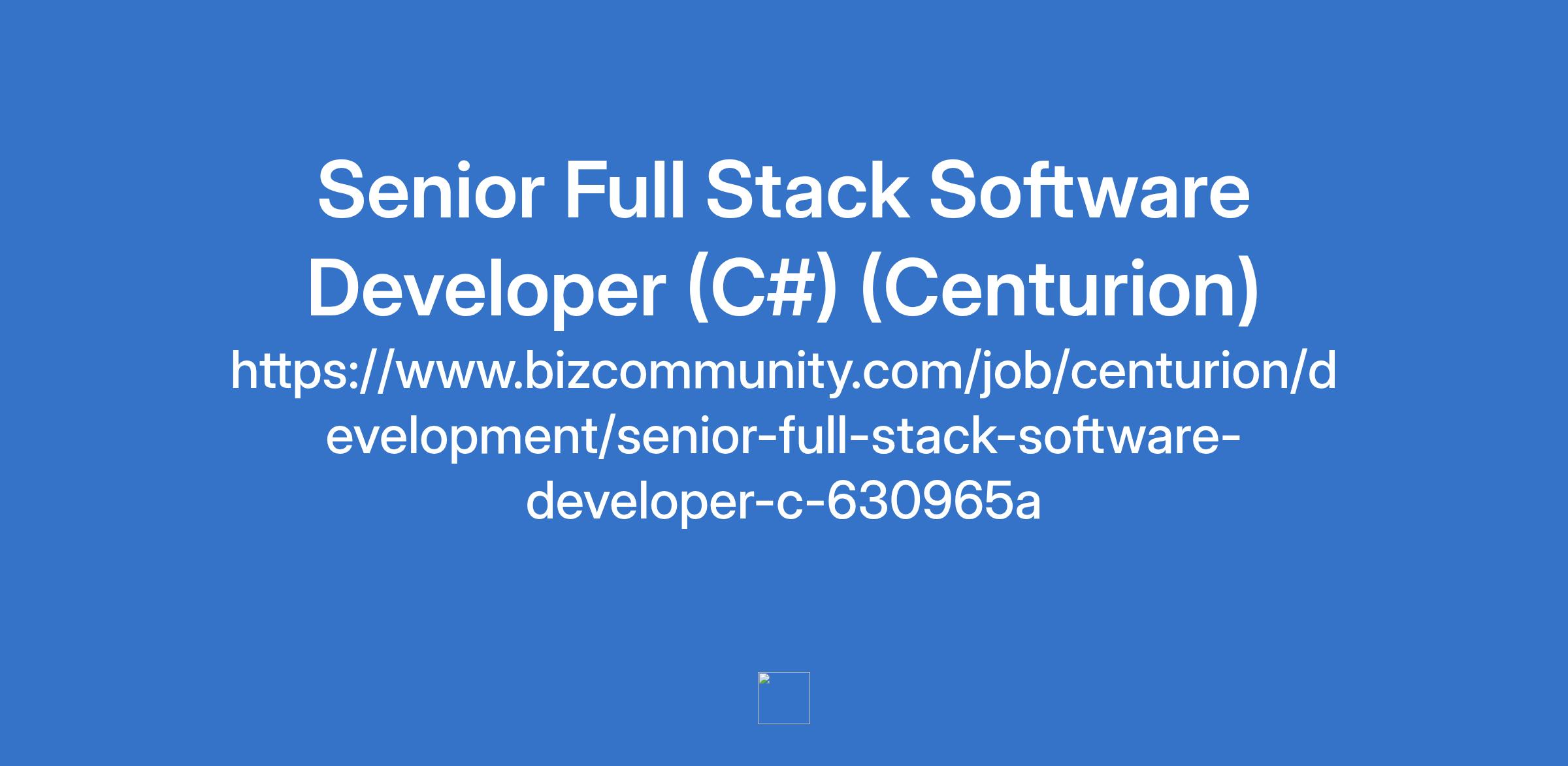 Senior Full Stack Software Developer (C#) (Centurion)